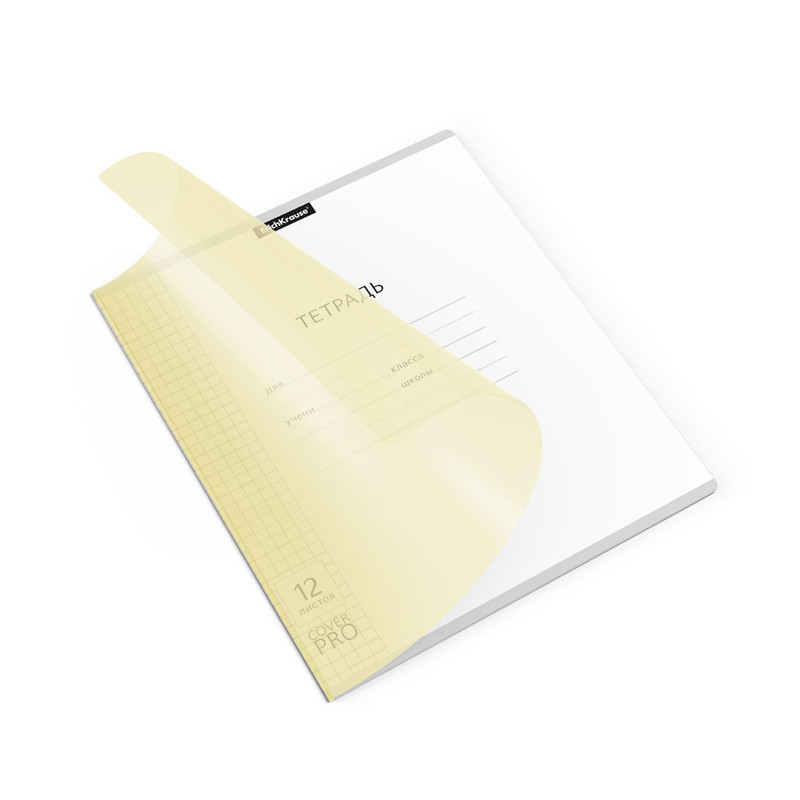 Тетрадь CoverPrо Pastel, 12 л, клетка, скоба, пластиковая обложка, ErichKrause, желтый