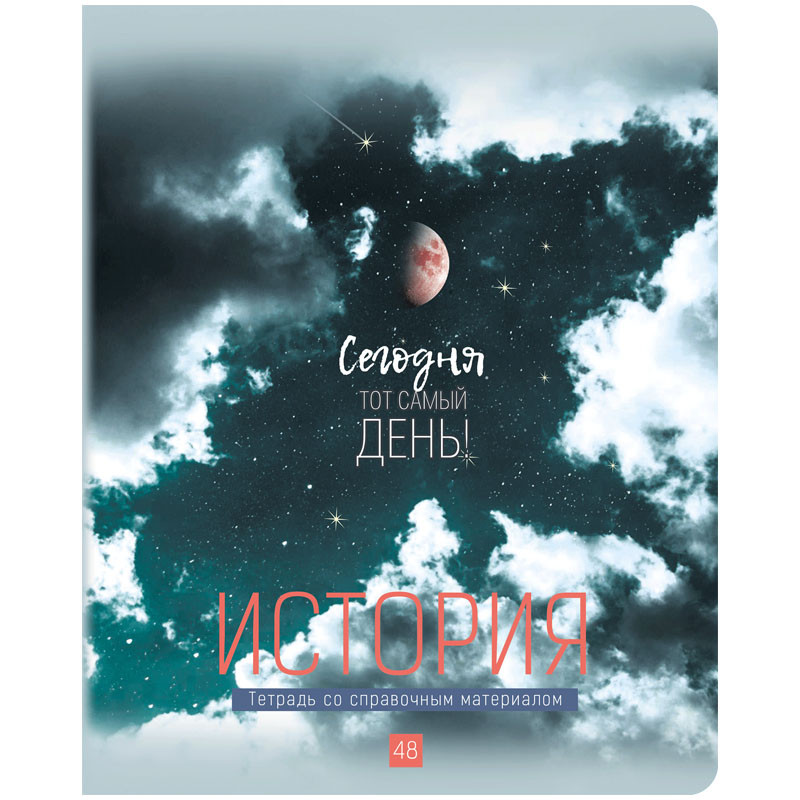 Тетрадь предметная «История» из серии «My Sky» со справочной информацией на форзаце и титульном листе. Формат А5. Вид крепления — скрепка. Обложка — мелованный картон с матовой ламинацией и металлизацией, скругленные углы. Внутренний блок — 48 листов, офсет 60 г/м2, клетка с полями.