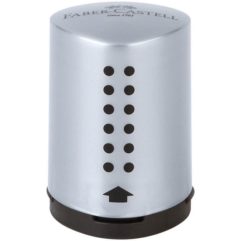 Точилка пластиковая "Grip 2001 Mini" 1 отверстие, контейнер, серебряная, Faber-Castell