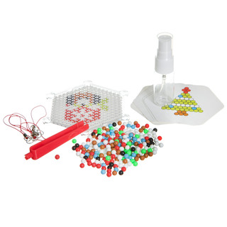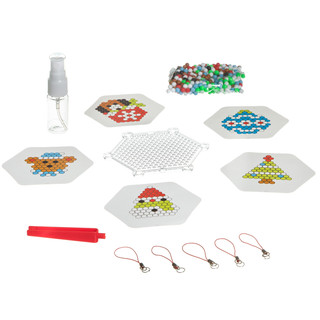 Разложите цветные шарики по трафарету, слегка смочите их водой, дайте им высохнуть и готовая фигурка из ярких бусин застынет! Теперь ребёнок сам сможет создавать себе игрушки в виде животных, зданий, автомобилей, любимых кино или сказочных героев. А самые любимые поделки можно носить с собой как брелок!