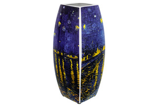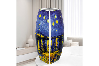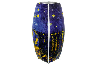 Ваза Elan Gallery «Звёздная ночь над Роной» размером 11,5×11,5×25 см и объёмом 2 литра прямоугольной формы выполнена из высококачественного костяного фарфора нового поколения New Bone China. Благодаря современным технологиям этот вид не уступает традиционному костяному фарфору в прозрачности, белизне и прочности, но при этом гораздо экологичнее в производстве. Яркий и узнаваемый сюжет с картины Ван Гога удачно впишется в любой стиль интерьера, добавляя красоты и романтики. Интерьерная ваза подойдёт для размещения букетов, искусственных цветов или сухоцветов. Стильная вазочка послужит элементом декора для вашего дома. В ней красиво будут смотреться букеты из любых цветов или веточек: роз, тюльпанов, вербы. Интерьерная ваза украсит комнату даже при использовании без наполнения. Эргономичная форма позволит поставить в неё цветы с длинными стеблями. Разместите декоративную вазу на столе или полке, чтобы создать в комнате стильный акцент. Большая настольная ваза поставляется в прочной подарочной упаковке. Станет шикарным подарком вашим близким: маме, бабушке, сестре или подруге на любой праздник. Красивая ваза с рисунком в синих и жёлтых оттенках станет украшением вашего дома и подчеркнёт красоту любого цветка!