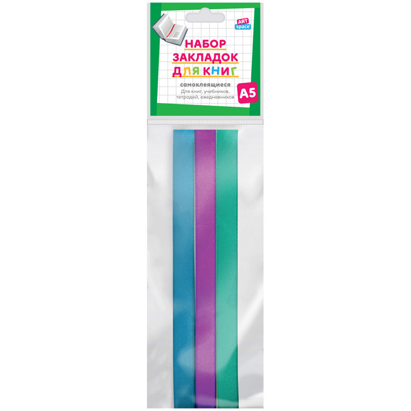 Набор закладок состоит из трех лент шириной 12 мм разных расцветок для изданий формата А5.