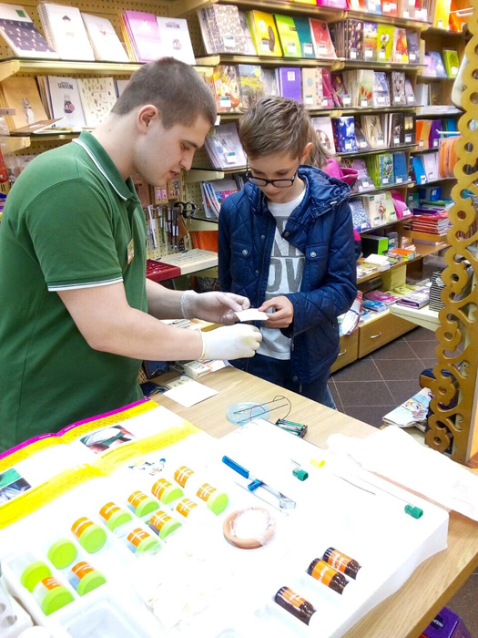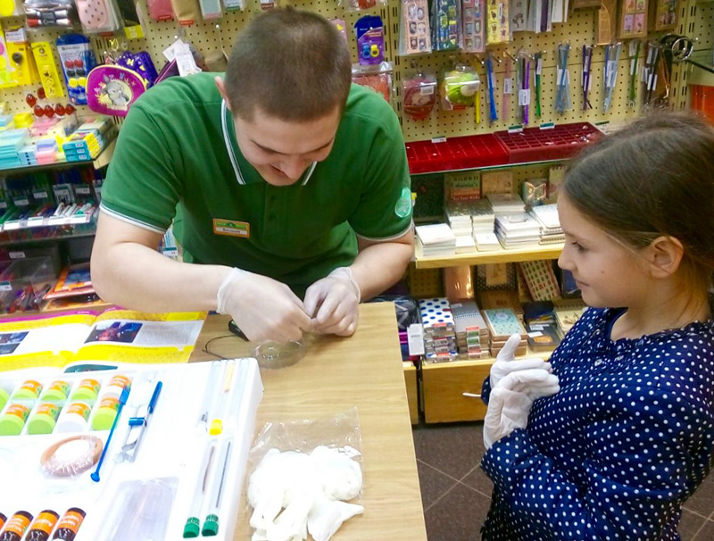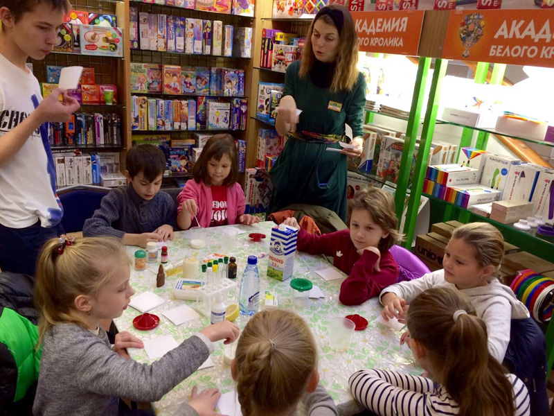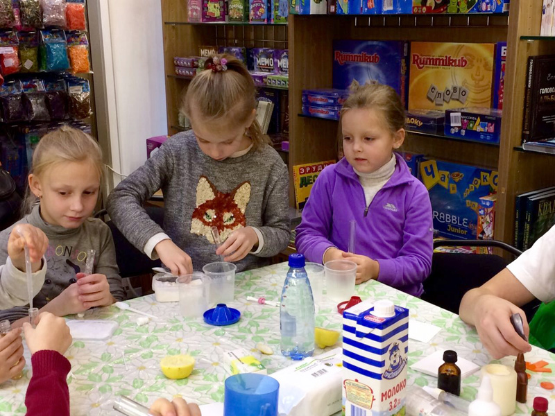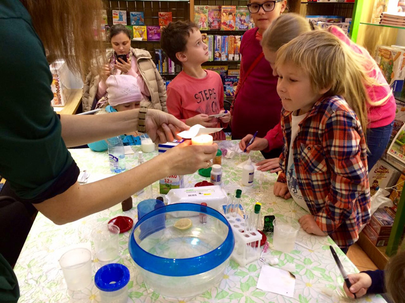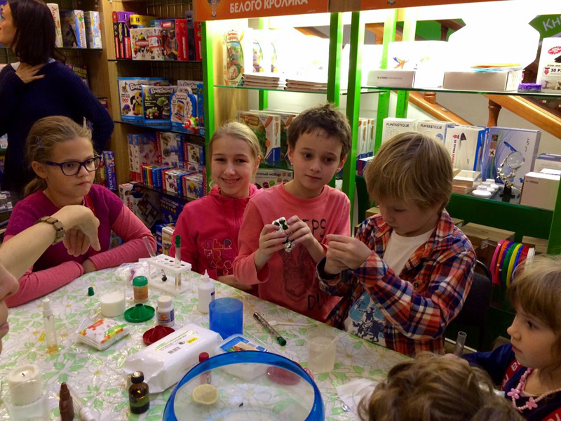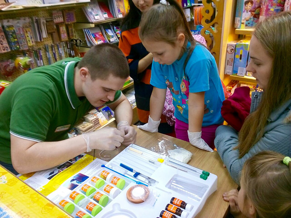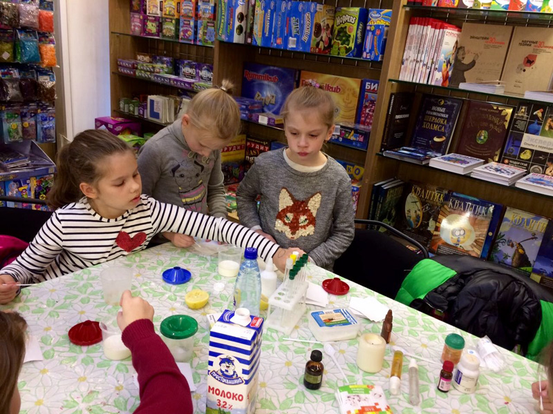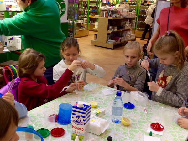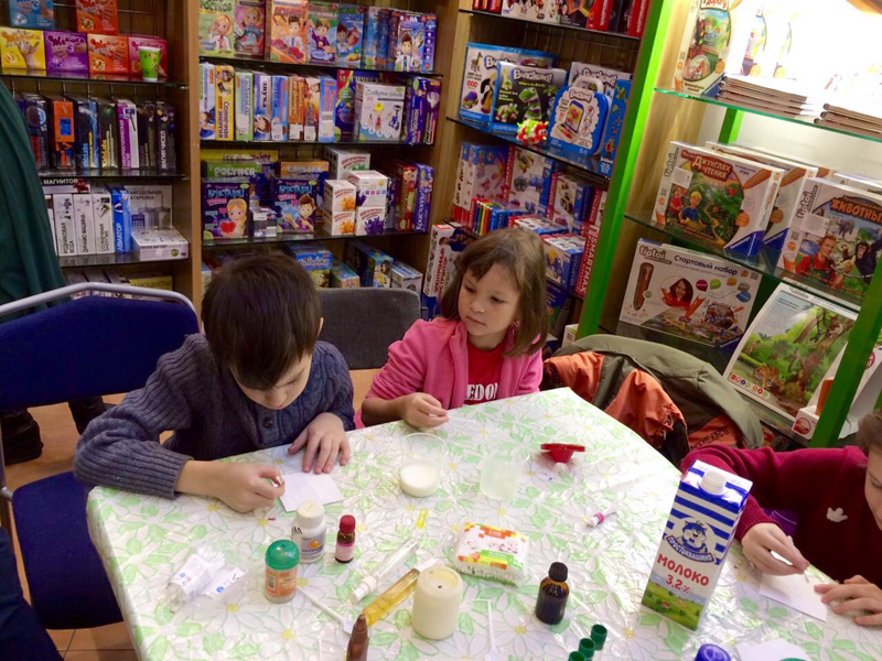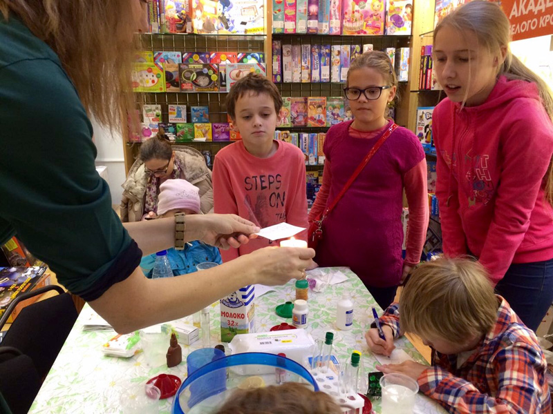 В октябре наши магазины превратились в необычные химические лаборатории. Несмотря на феерическую атмосферу и буйный восторг юных «химиков», во время опытов ничто не бабахнуло, не закипело, пострадавших нет, магазин цел!