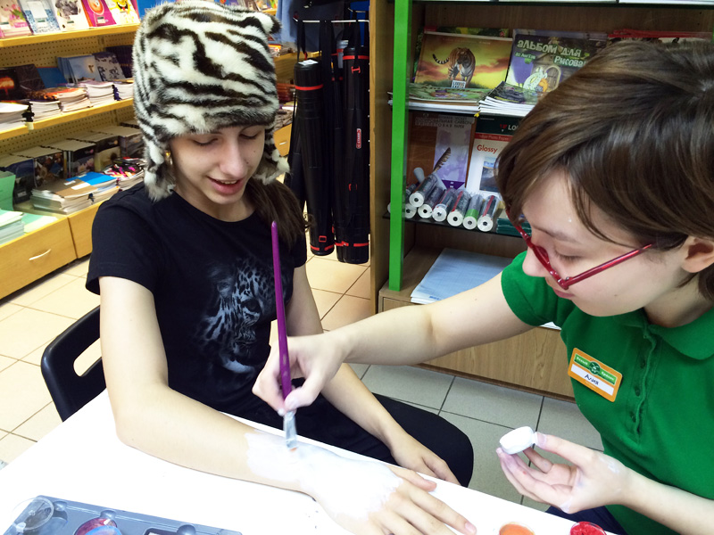 Мы дали волю воображению участников — они сами руководили процессом и выбирали персонажей, в которых их превращал аквагримёр. И уж поверьте, маленькими рисунками дело не ограничилось!