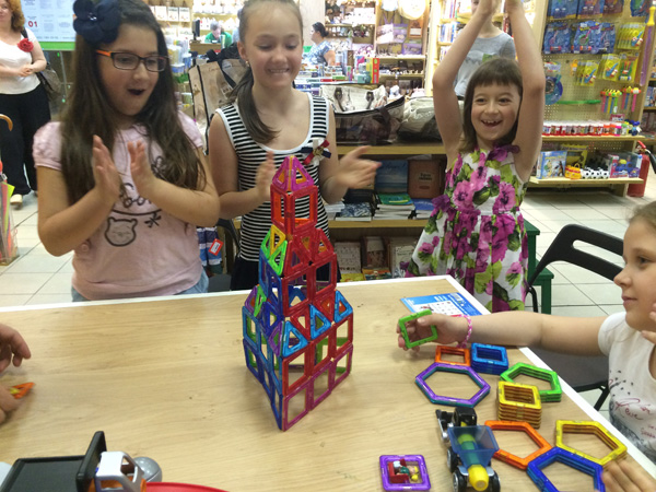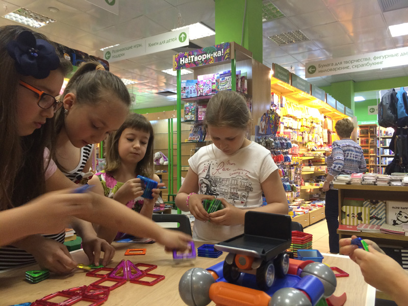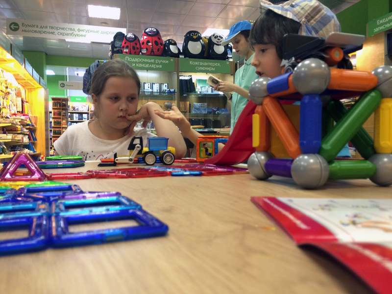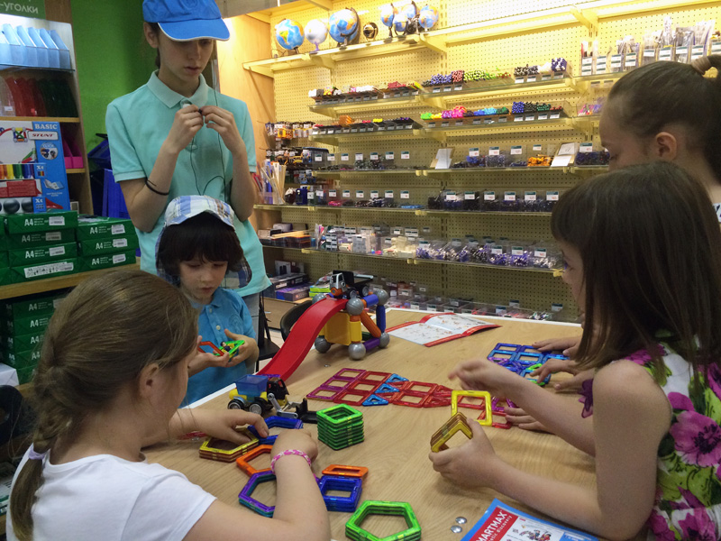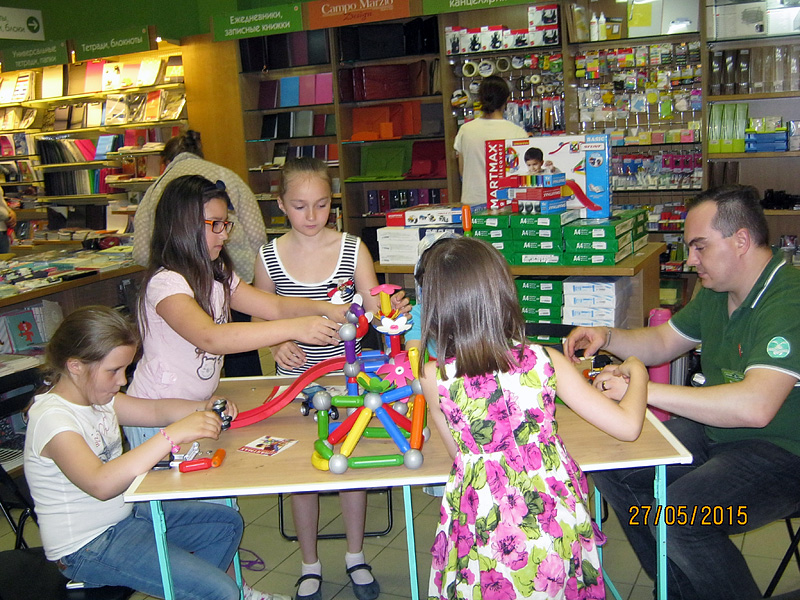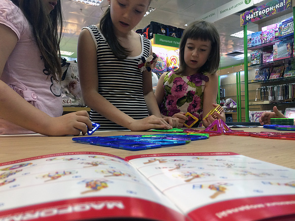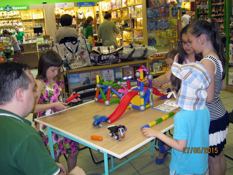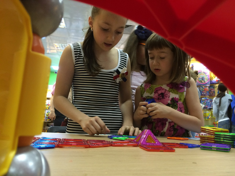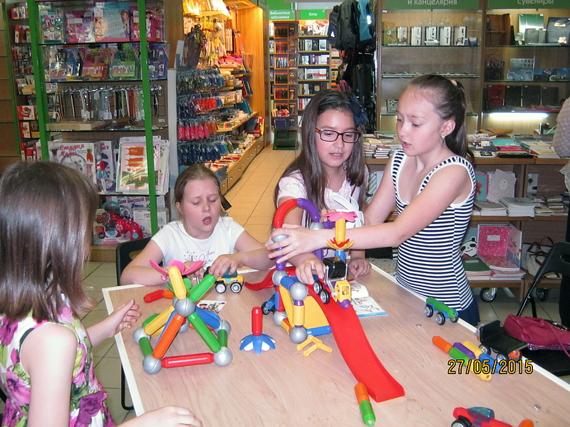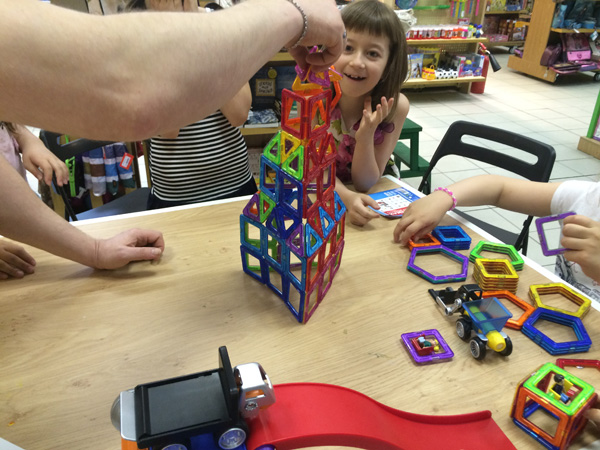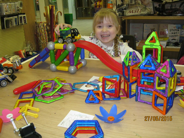 Удивительно, что на дне конструктора среди наших гостей большинство были — девочки! Наши подружки и друзья не только красивые и очаровательные, но и очень смышлёные. Точно следуя указаниям из наборов конструкторов, им удалось безошибочно воздвигать сложные сооружения и целые строительные комплексы =)