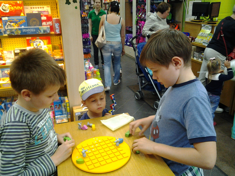 А потом настоящий жаркий бой начался прямо в магазине. Мы играли в любимые настольные игры. Победила дружба и морковка!
