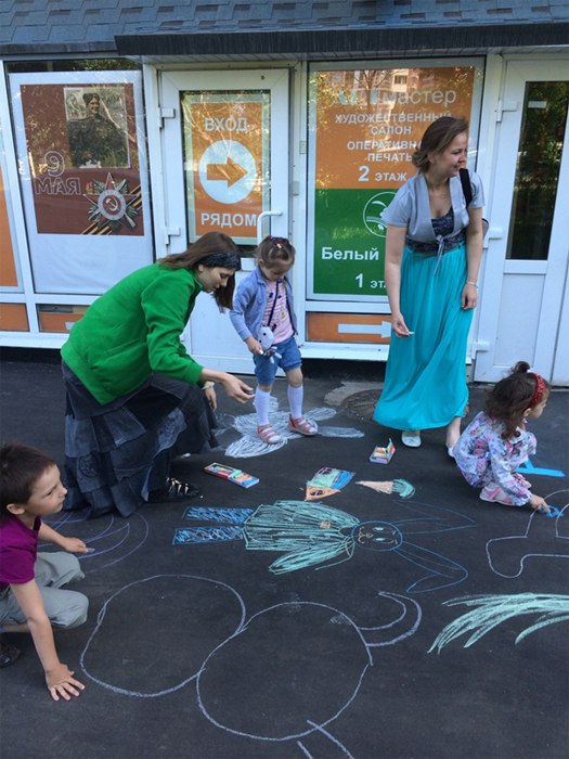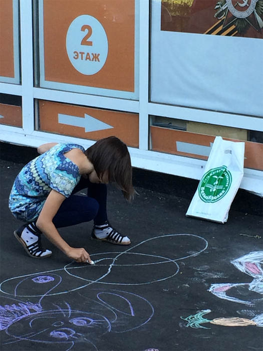 Кажется, рисовать мелком на асфальте любят все! Взрослые старательно делали вид, что просто помогают, но мы-то всё знаем =)