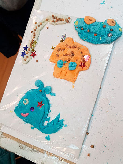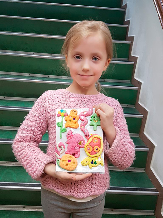 После обретения окончательной формы все фигурки вдруг затвердели. Яркие и диковинные барельефы тут же были подарены родителям. Было очень трогательно наблюдать, с каким увлечением дети фантазировали, и как они радовались тому, что получилось!