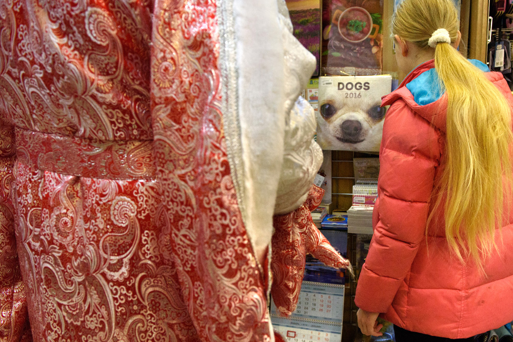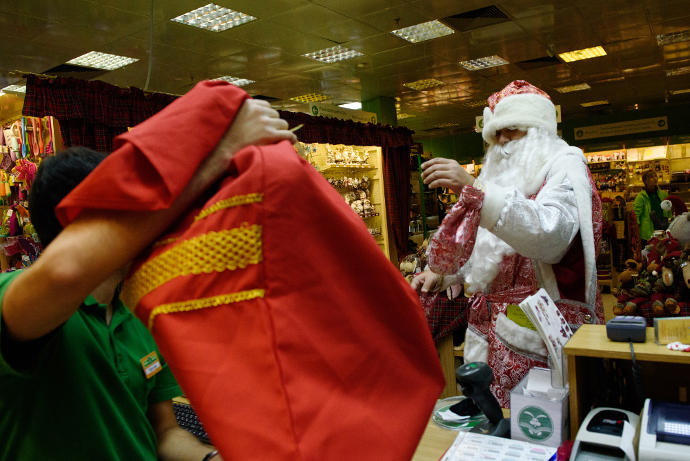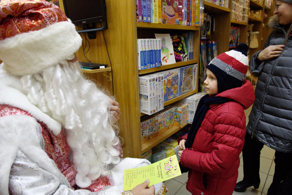 Дедушка Мороз привлекал внимание не только своим красным расписным халатом и длинной белой бородой. Он выглядел слегка взволнованно: оказывается, дедушка никак не мог найти тот самый магазин с подарками, который ему посоветовали эльфы-помощники. Дедушка Мороз расспросил гостей торгового центра и те, конечно, с радостью согласились проводить его!
