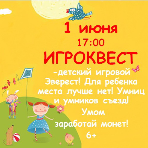 Приглашаем 1 июня в 17.00 в ТЦ «Колумбус» на наш прикольный «Игроквест»!