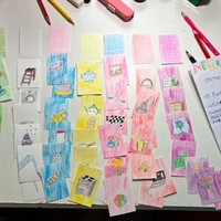 - Нарисуй (10 карточек) – объясни слово с помощью рисунка за минуту; если игрок рисует слово 1, то он переходит на 2 шага, если слово 2 — на 4, а угадавший игрок на 1 шаг.