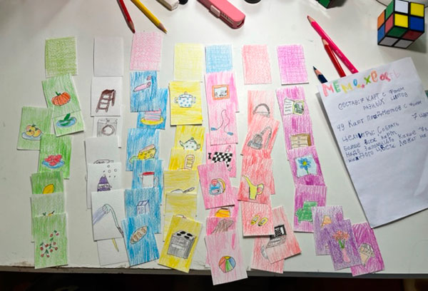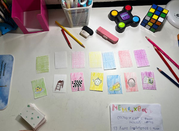 Карточки сверху покрыты скотчем для их укрепления и сохранения.10. Настольная игра «Запомни — повтори». Булаев Артём, 8 лет