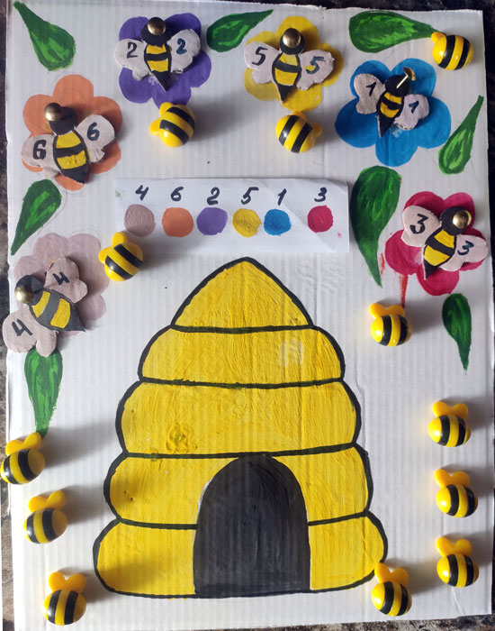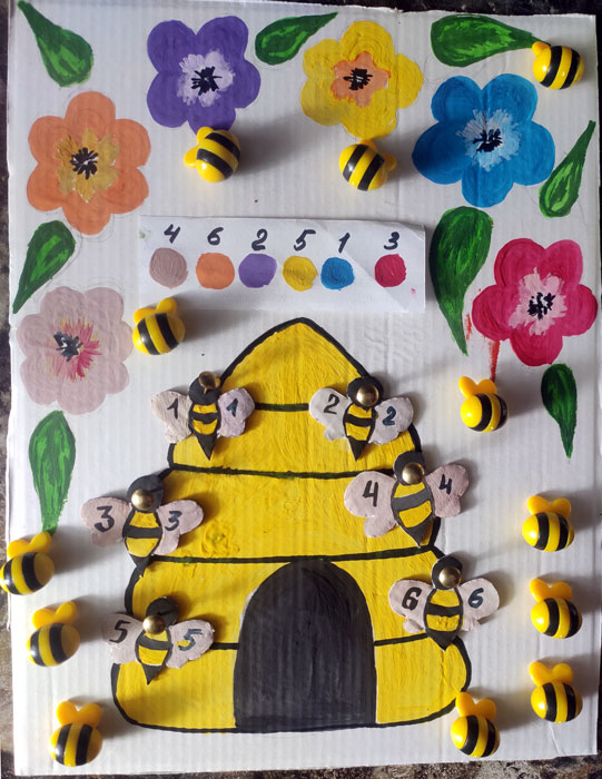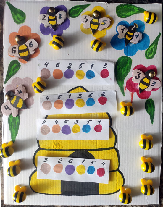 Правила очень простые. Выбираем карточку и раскладываем пчёлок по порядку на цветочки.