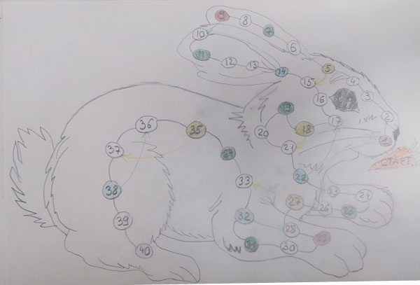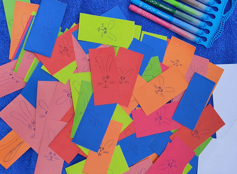 Детали тетриса надо вырезать из бумаги. Все фигуры должны поместиться внутри кролика, не вылезать за пределы, также должны отсутствовать пустые клетки.