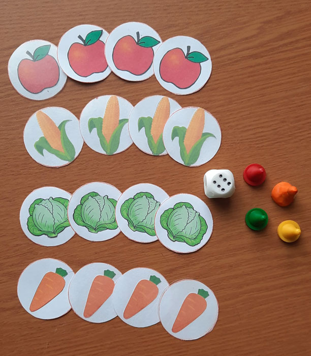 2-4 игрока. Дети (можно и взрослым) по очереди кидают кубик. Расстояние, на которое игрок может продвинуть свою фишку, определяется броском кубика.