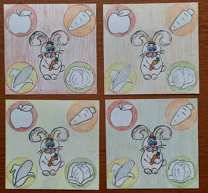 2. Фигуры цветные. Тогда белого кролик превратится в цветного