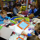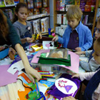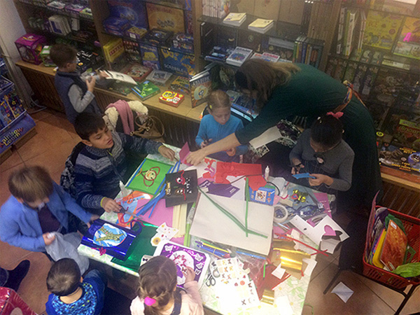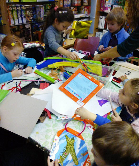 Однажды в магазине на Ленинском случился невиданный ажиотаж. Всем вдруг захотелось создать необычные объёмные аппликации. Дети получили необходимый материал для творчества и под руководством опытных инструкторов увлекательная работа закипела!