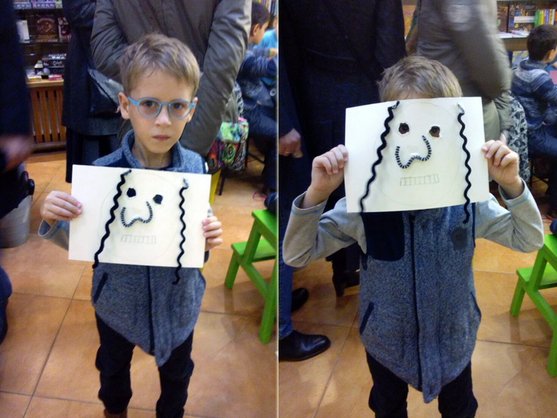 И вот дети с удовольствием продемонстрировали плоды удивительного творчества. Больше всего было сделано объёмных масок. Мы подозреваем, что это связано с приближающимися праздниками, юные мастера готовили себе карнавальные костюмы.