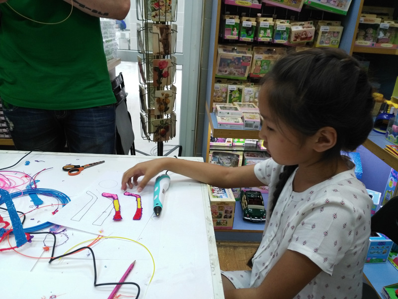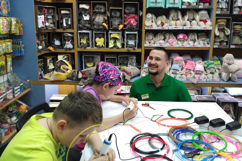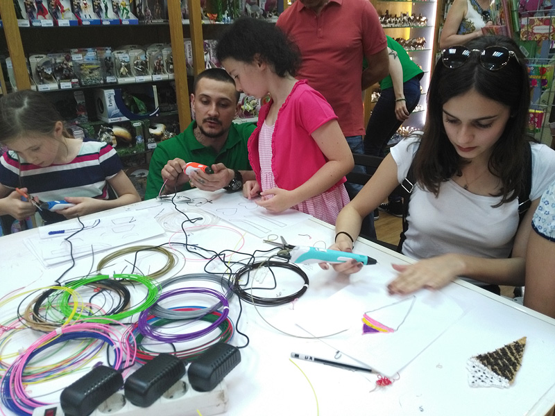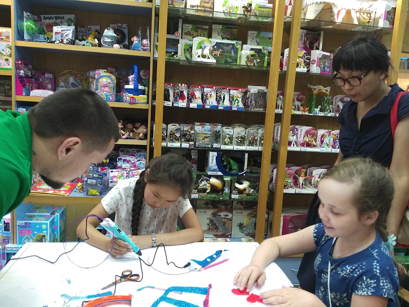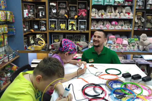 Не так давно наш магазин на Красной Пресне превратился в лабораторию новейших 3D-технологий. Будущие учёные в возрасте от семи вместе со своими родителями осваивали рисование 3D-ручками.