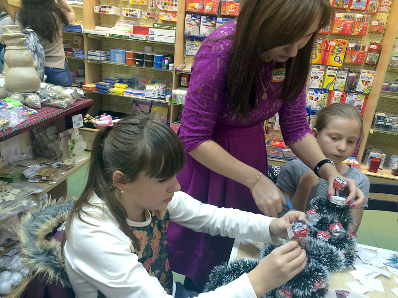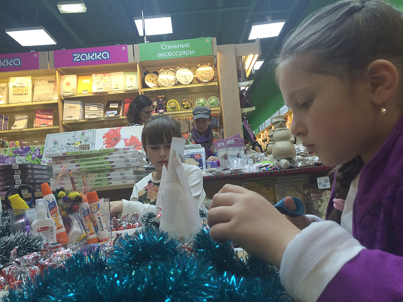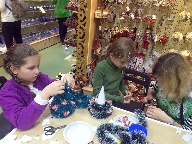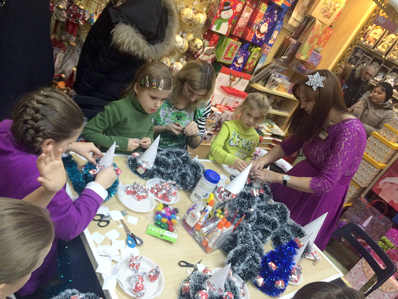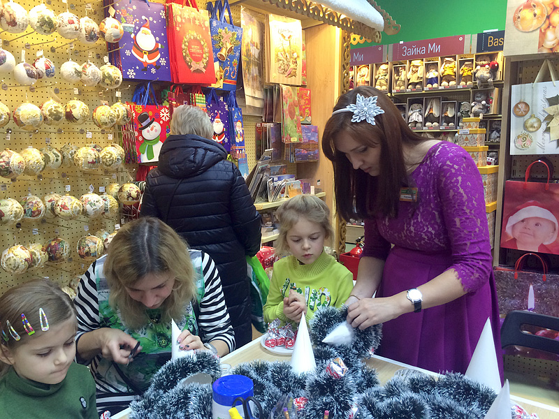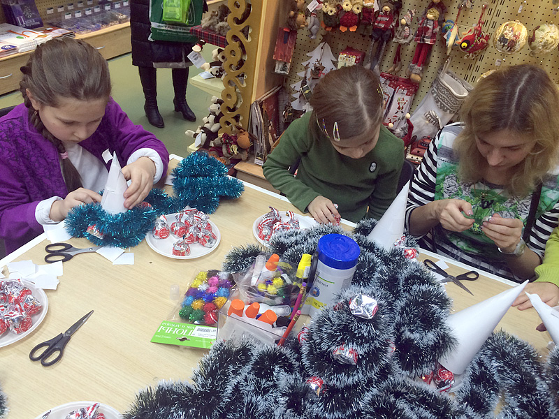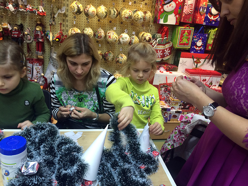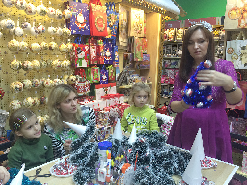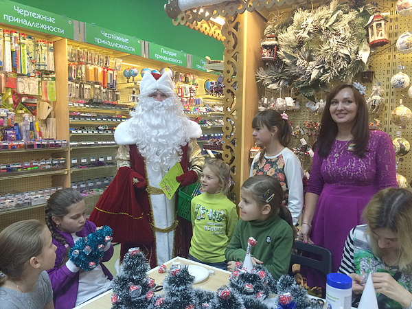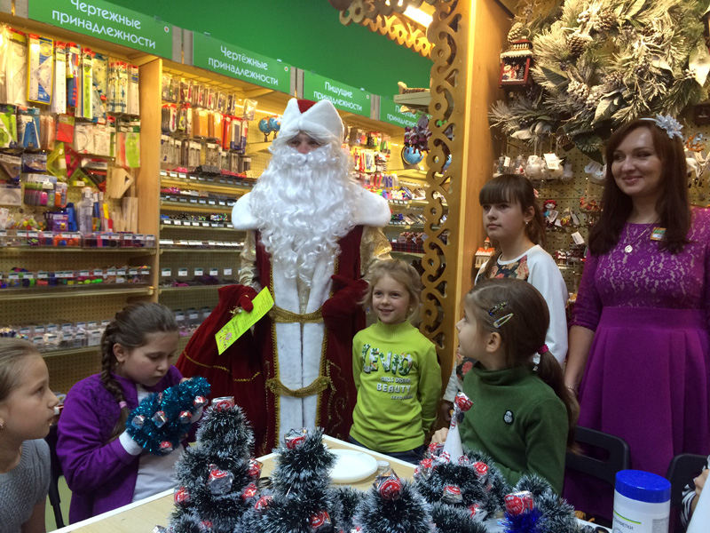 Мы верим в сказки, поэтому они и случаются с нами =) Этот мастер-класс был по-новогоднему богат на чудеса: красивые блестящие ёлочки, замечательное настроение и… настоящий Дед Мороз, который прогуливался по магазину. Выбирая подарки!