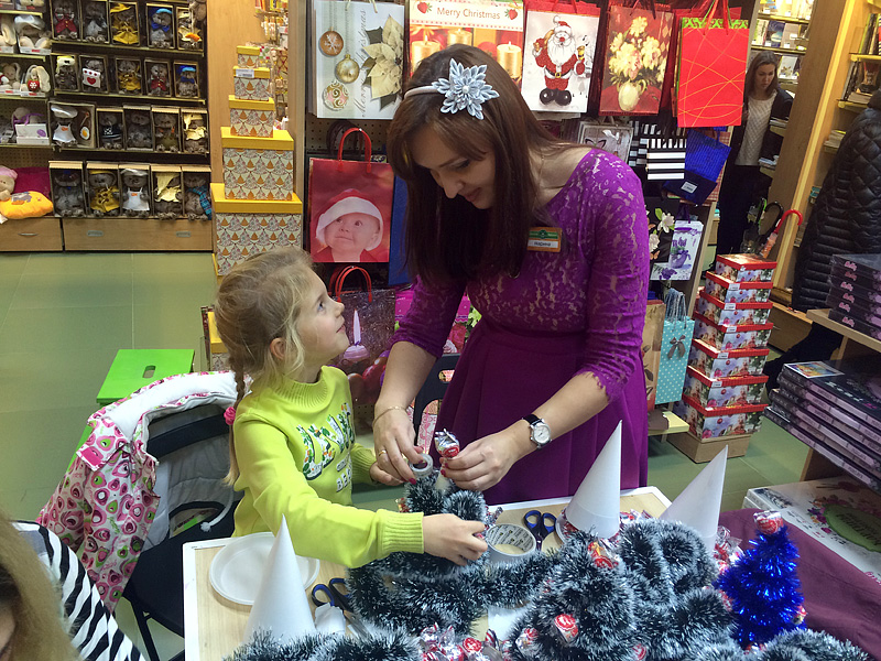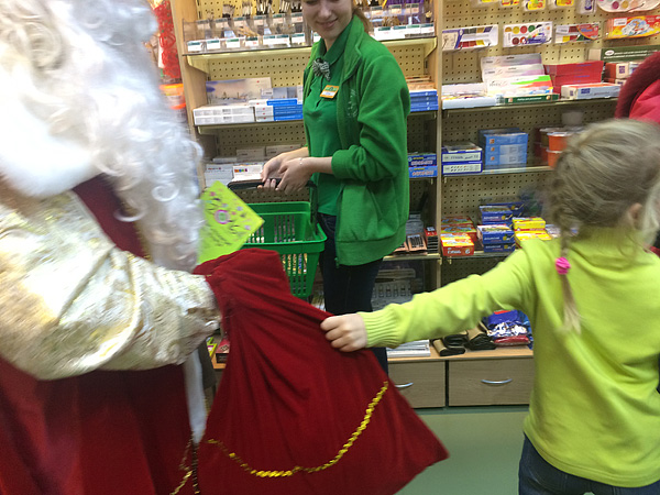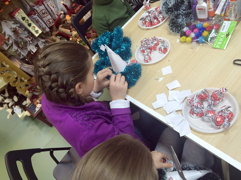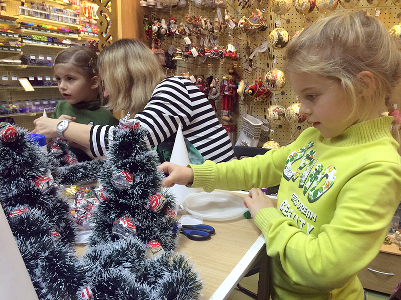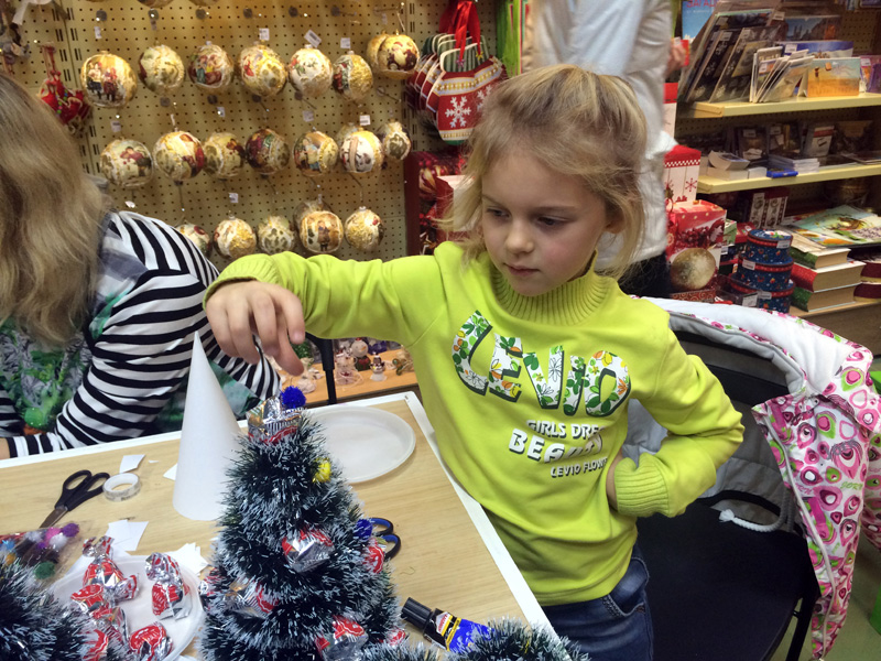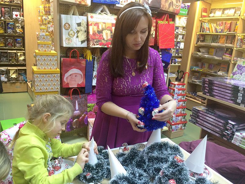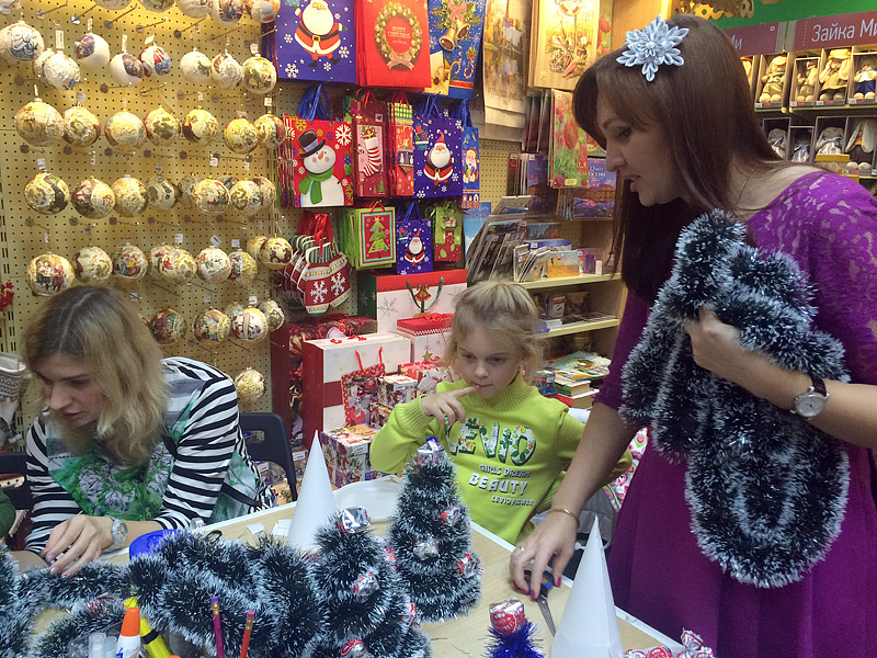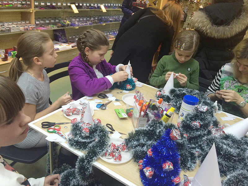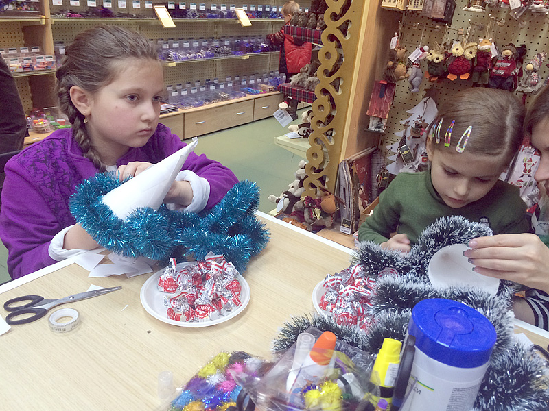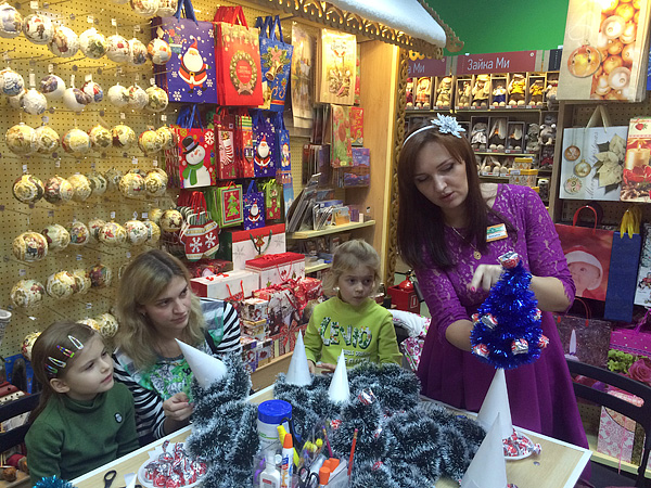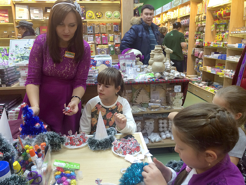 Мы верим в сказки, поэтому они и случаются с нами =) Этот мастер-класс был по-новогоднему богат на чудеса: красивые блестящие ёлочки, замечательное настроение и… настоящий Дед Мороз, который прогуливался по магазину. Выбирая подарки!