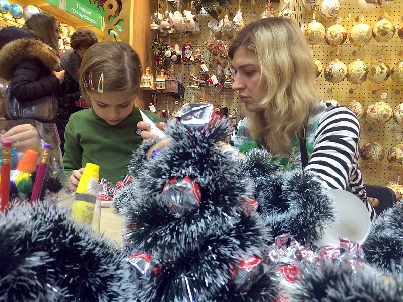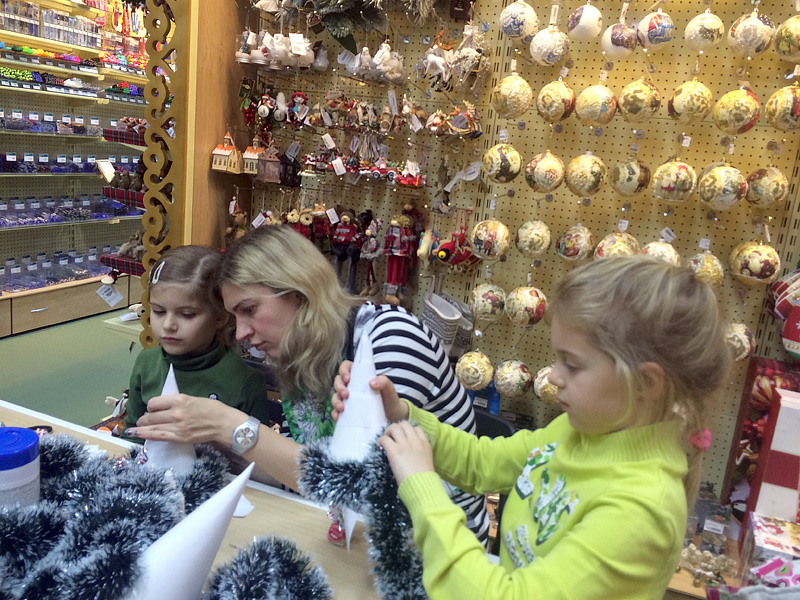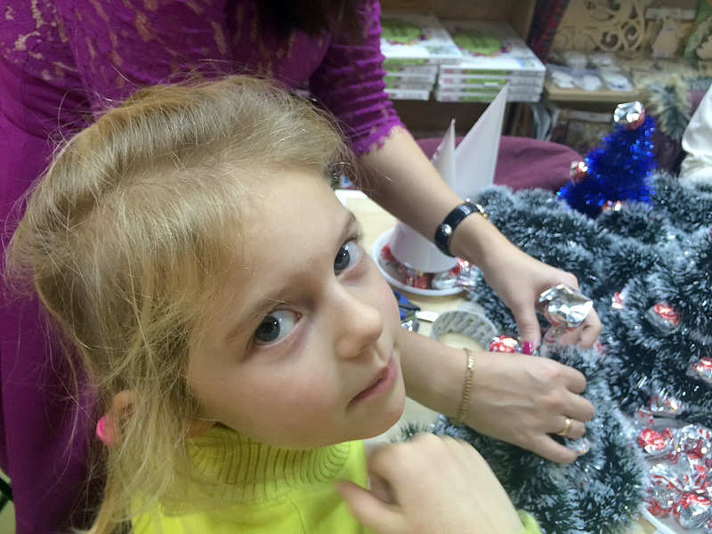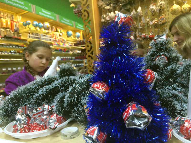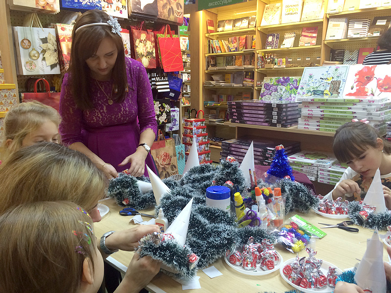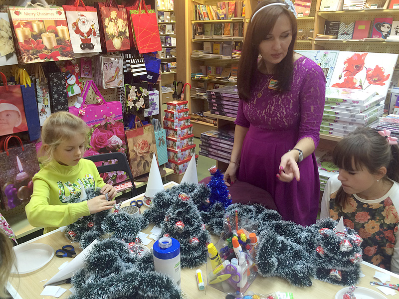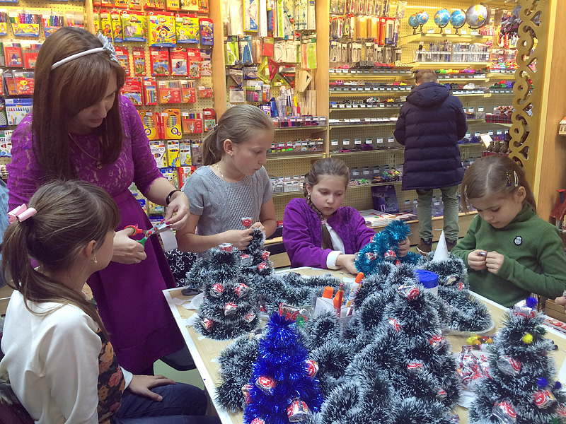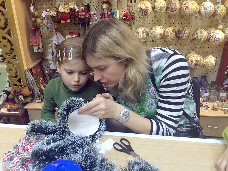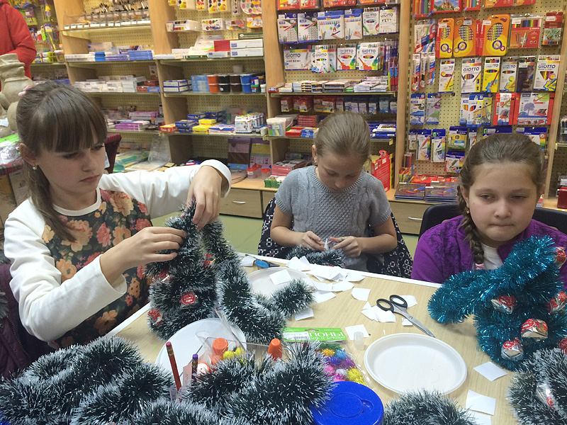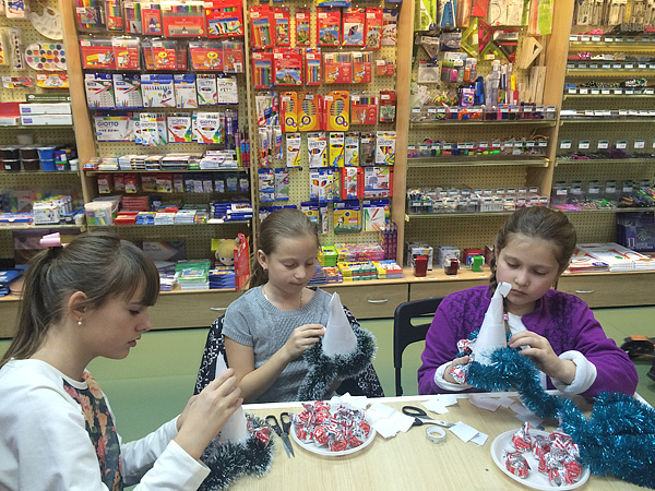 Мы верим в сказки, поэтому они и случаются с нами =) Этот мастер-класс был по-новогоднему богат на чудеса: красивые блестящие ёлочки, замечательное настроение и… настоящий Дед Мороз, который прогуливался по магазину. Выбирая подарки!