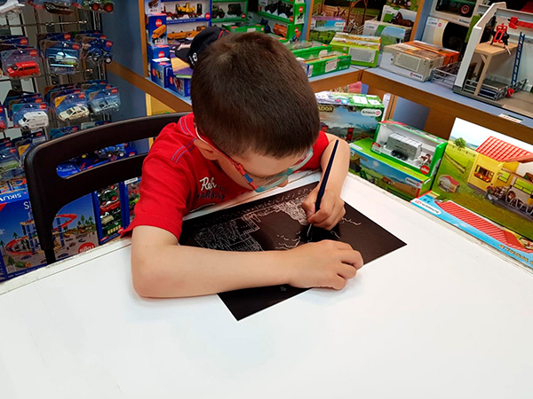 Как же здорово, когда можно царапать у всех на виду, да ещё и получать за это похвалы взрослых! Мы вдохновлённо царапались на мастер-классе по искусству гравюры :)