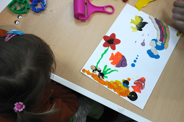 Пластилин в соединении с рисунком на бумаге образует великолепные объемные картины. Техника очень проста и доступна для детей, раскрывает их творческое видение и позволяет легко создавать интересные рисунки. А вы знаете, что произойдёт, если смешать пластилин разных цветов и раскатать его роликом по бумаге? Для детей такие превращения кажутся просто волшебством. В ход идут пальцы, штампы, трафареты.. И результаты действительно удивительные!