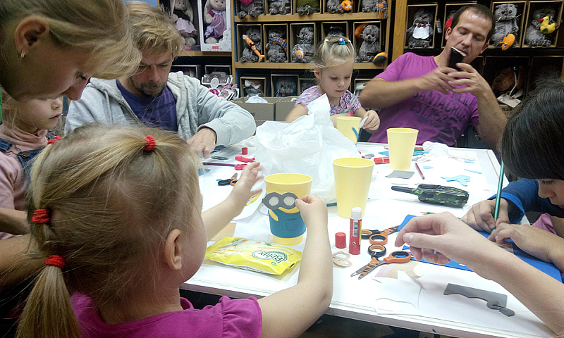 Ребята так заразительно мастерили карандашницу-миньона, что взрослые не смогли не присоединиться. Атмосфера коллективного творчества пошла на пользу, и поделки получились как у настоящих профессиональных мастеров!