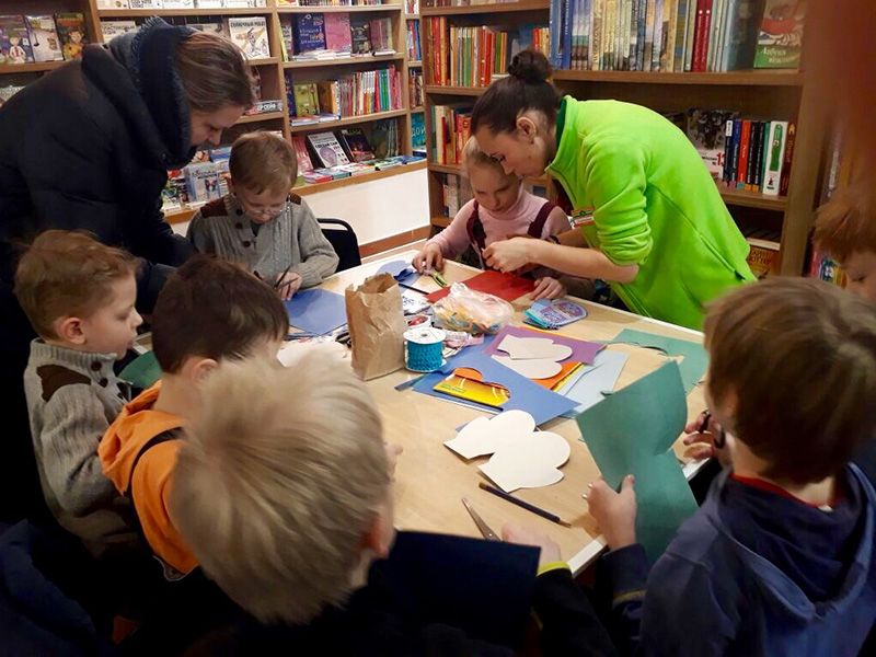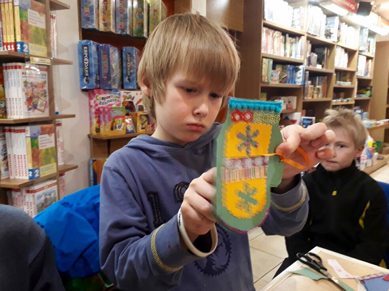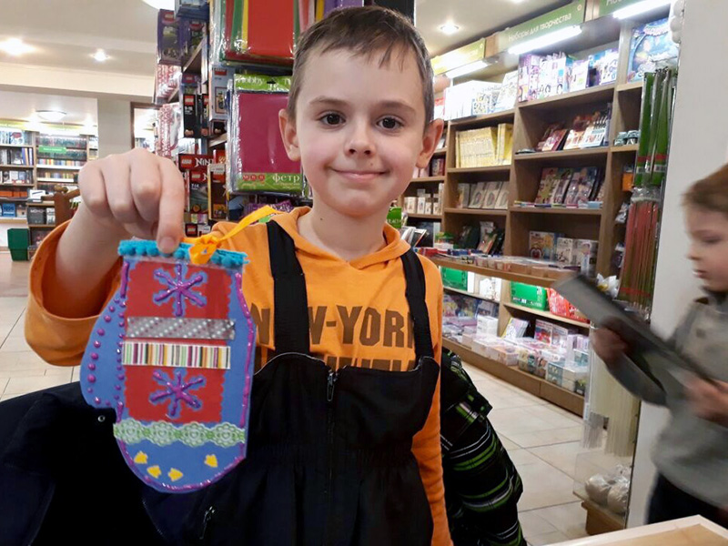 Мы с увлечением вырезали и клеили, придумывали орнамент и цветовые сочетания. Кропотливая работа, а в то же время очень простая и интересная, ребята ведь подходили к делу с душой. В этот день в магазине царила творческая атмосфера, помноженная на фантазию и позитив!