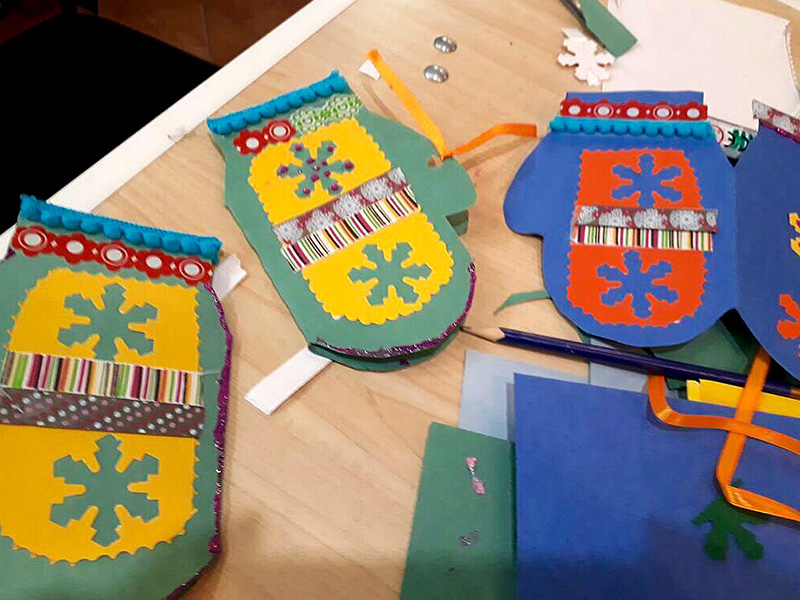 МК открытка-варежка - скрапбукинг, все активно работают )