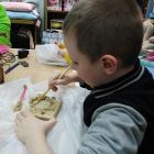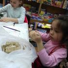 До начала занятия для наших юных палеонтологов была выполнена подготовительная работа. Весёлые и совсем даже не страшные динозаврики были помещены под многовековой слой грунта, изготовленный из песка и клея ПВА.
