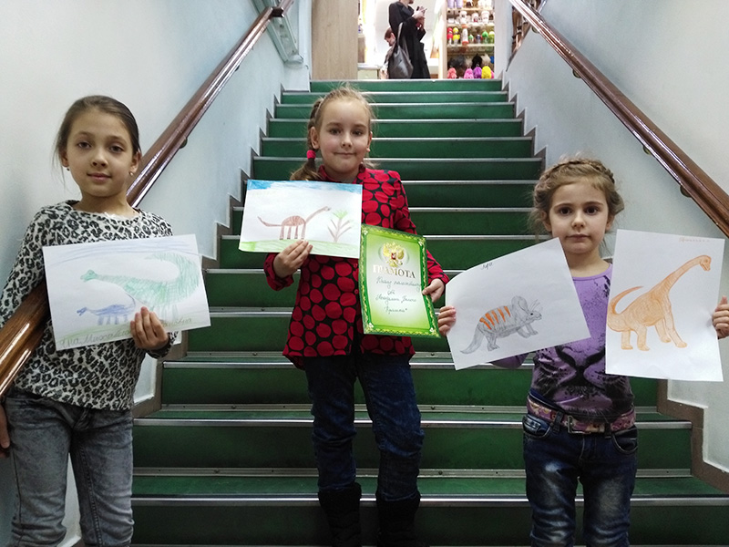 В завершение мастер-класса дети нарисовали своих добрых динозавриков и получили в подарок фигурки этих древних и загадочных существ.