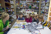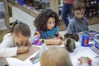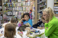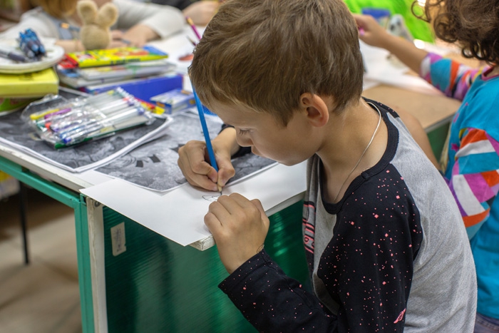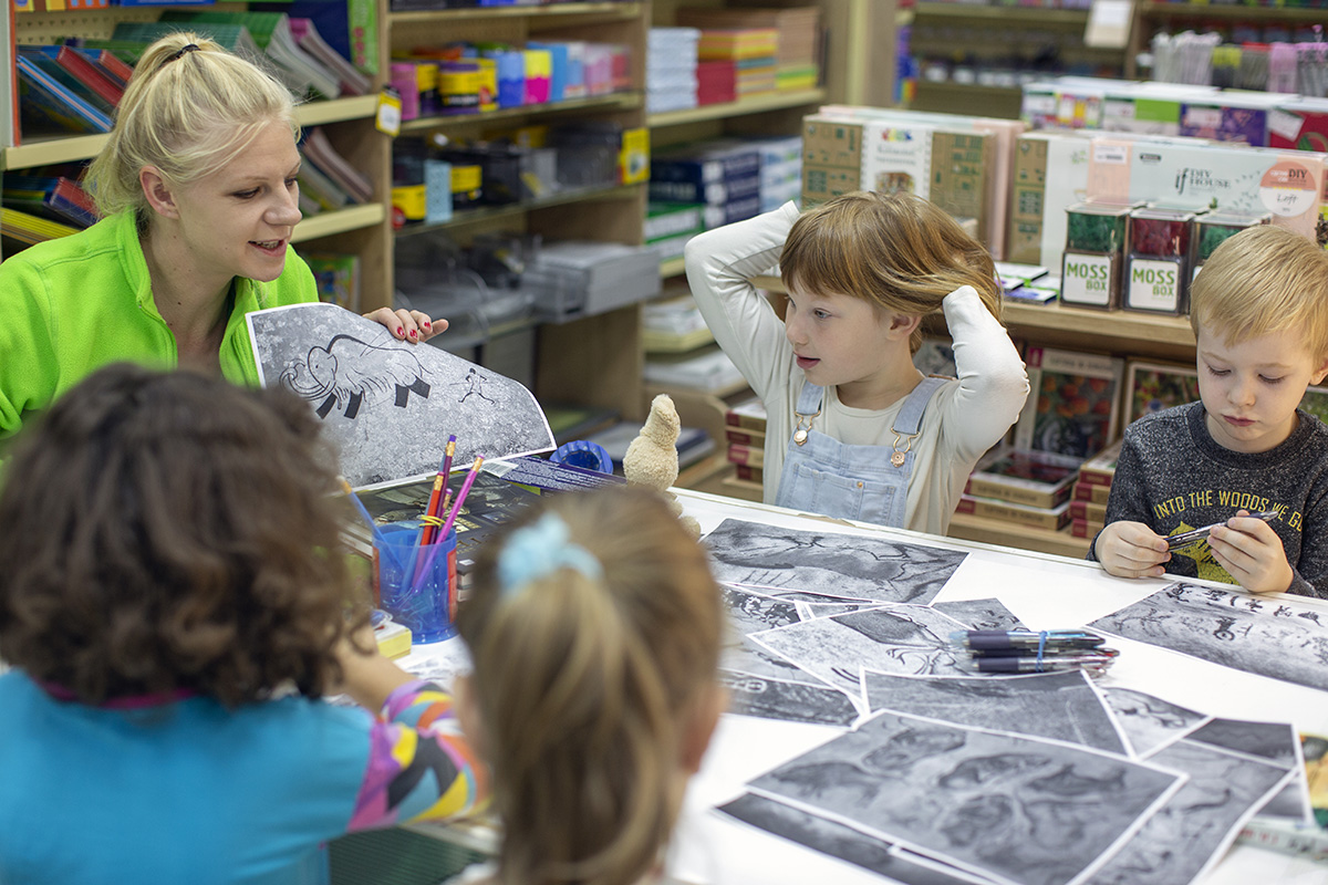 На бумажных скалах детских рисунков поселились диковинные животные и птицы. Вся наша «пещера» в один миг закричала, замычала, заурчала и затопала. Нам от этого звериного хора было очень весело :)