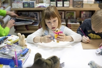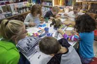 Как же хочется оставить свой след в далёкой истории! Мы с ребятами взяли специальную бумагу, карандаши, краски, и создали свои наскальные рисунки. Может быть, через тысячу лет учёные будут изучать и эти детские творения? :)