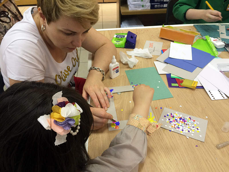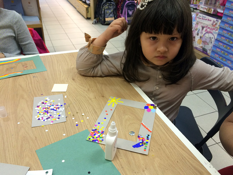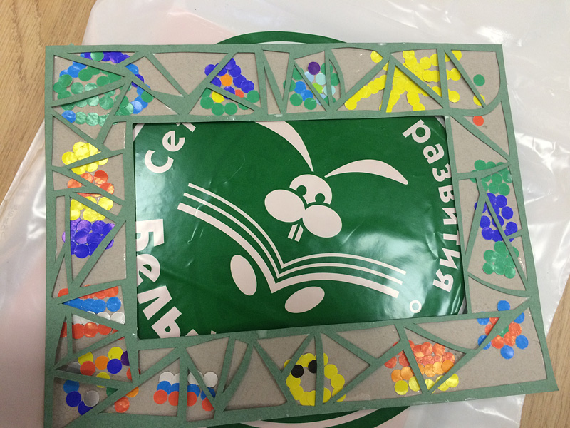 Завершением мастер-класса стало торжественное наклеивание резной рамки на основу с конфетти. Каждый раз мы удивляемся и радуемся тому, насколько разные поделки получаются у каждого участника. Воображения и фантазии нашим друзьям не занимать!