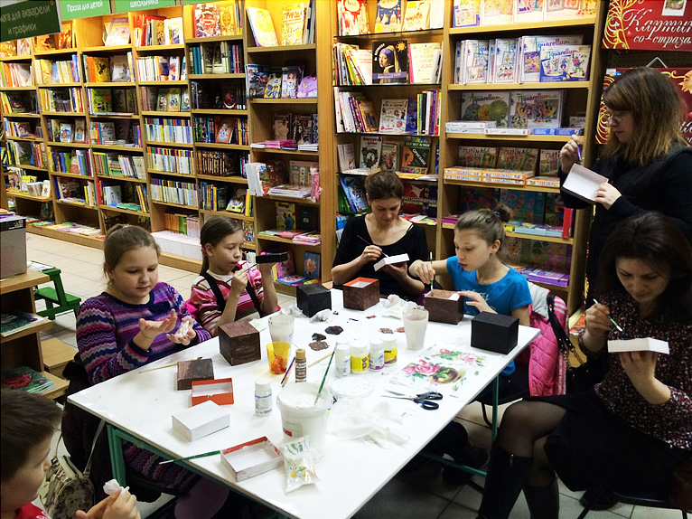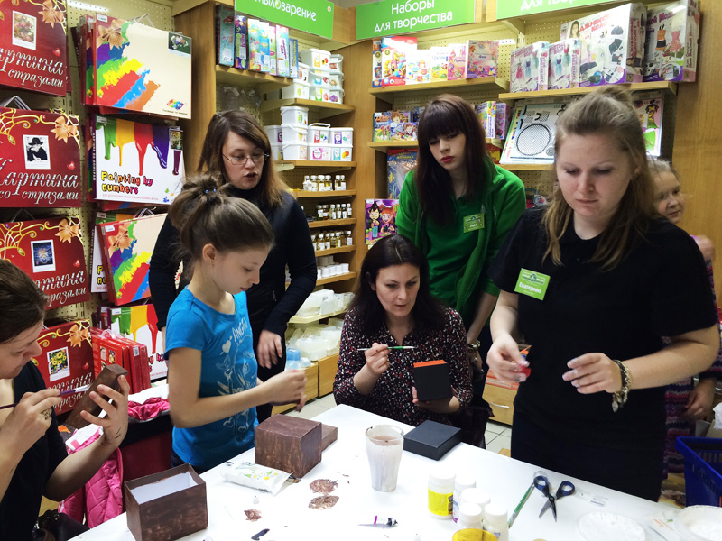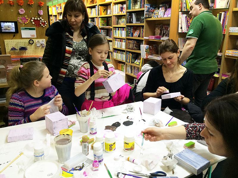 Каждая девочка с самого детства знает, что шкатулка — вещь незаменимая. Ещё бы, самые блестящие драгоценности и самые ценные блёстки хранятся именно в таких шкатулочках. А ещё всем известно, что шкатулок много не бывает. Поэтому теперь у ребят, которые посетили мастер-класс, и у их мам и подруг точно прибавится модных hand-made шкатулок!