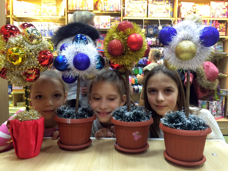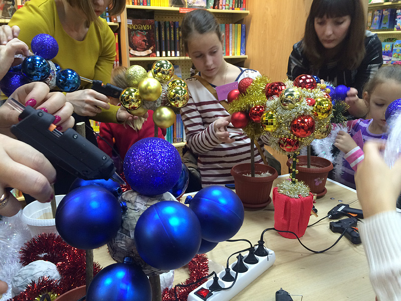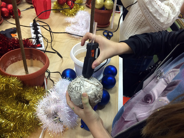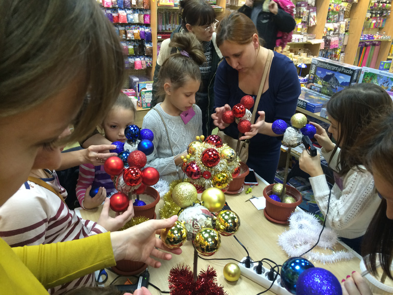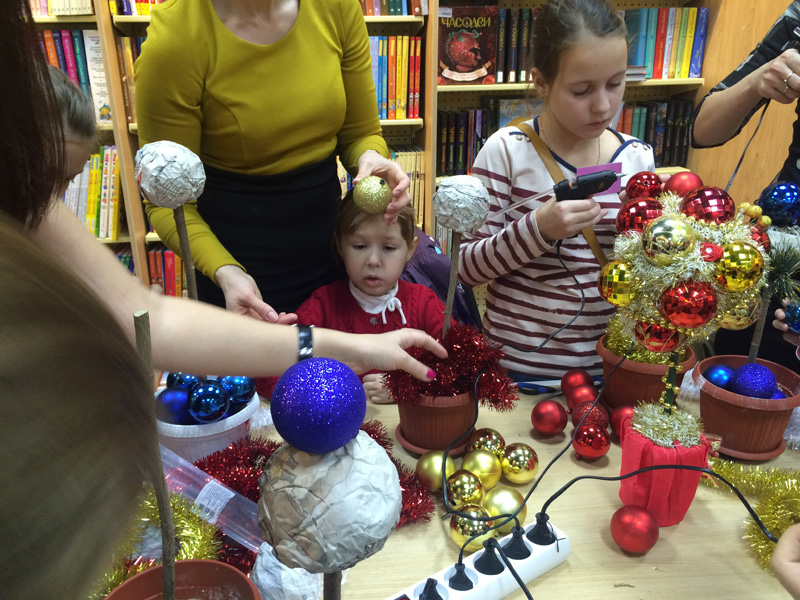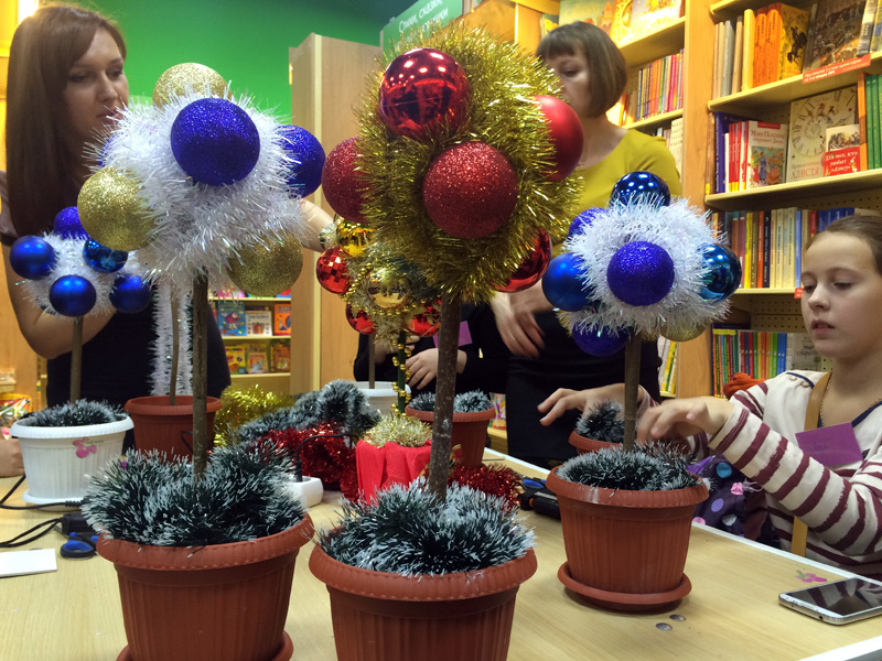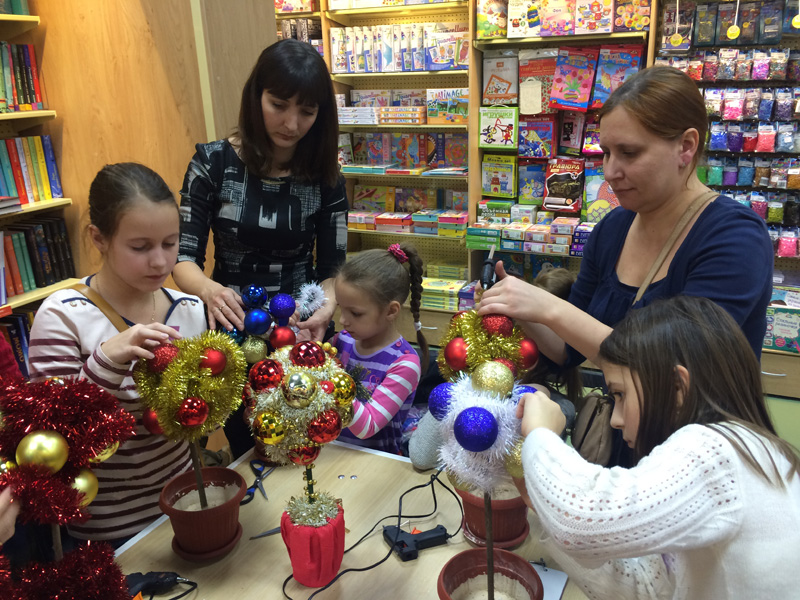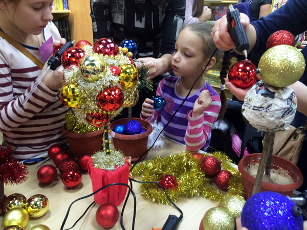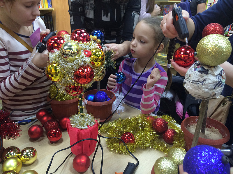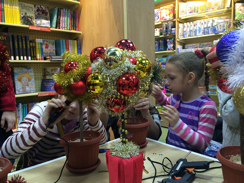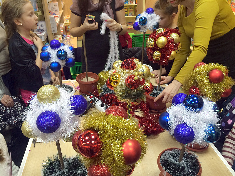 Каждый мастер-класс уникален, а этот был ещё и по-праздничному яркий и весёлый. Мастерить новогодний топиарий ребята пришли в приподнятом настроении, что ничуть не помешало им сосредоточиться на работе.