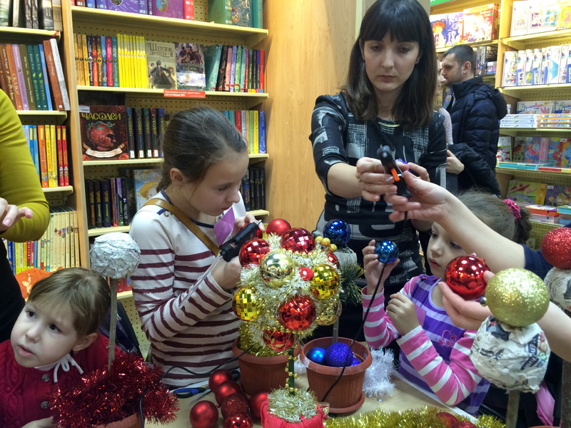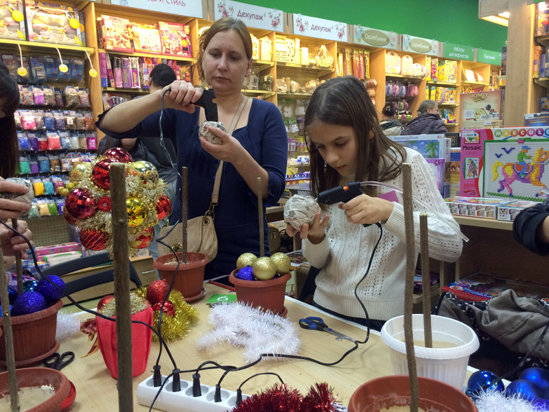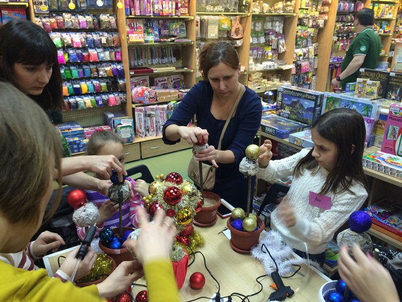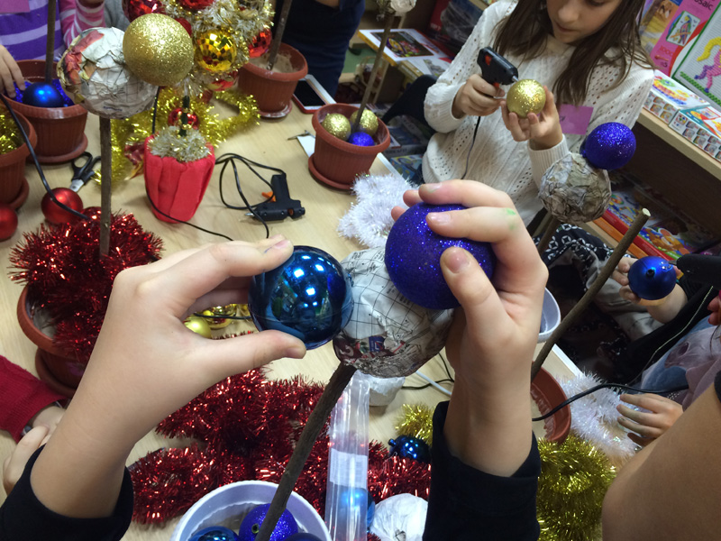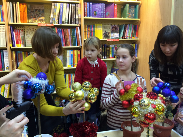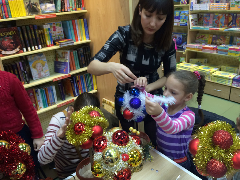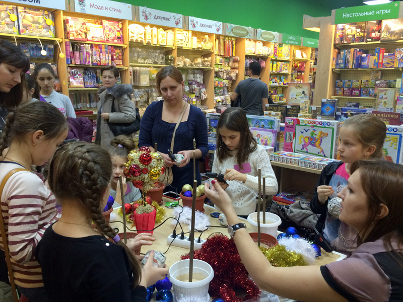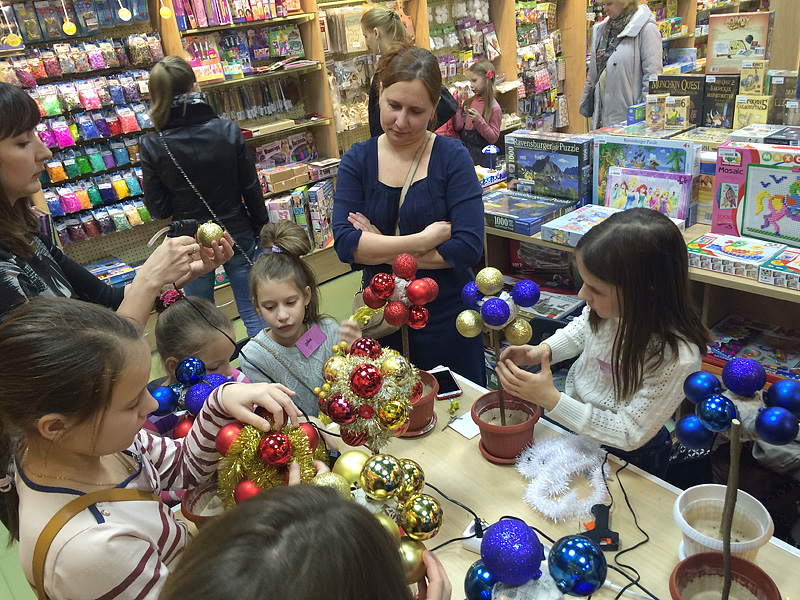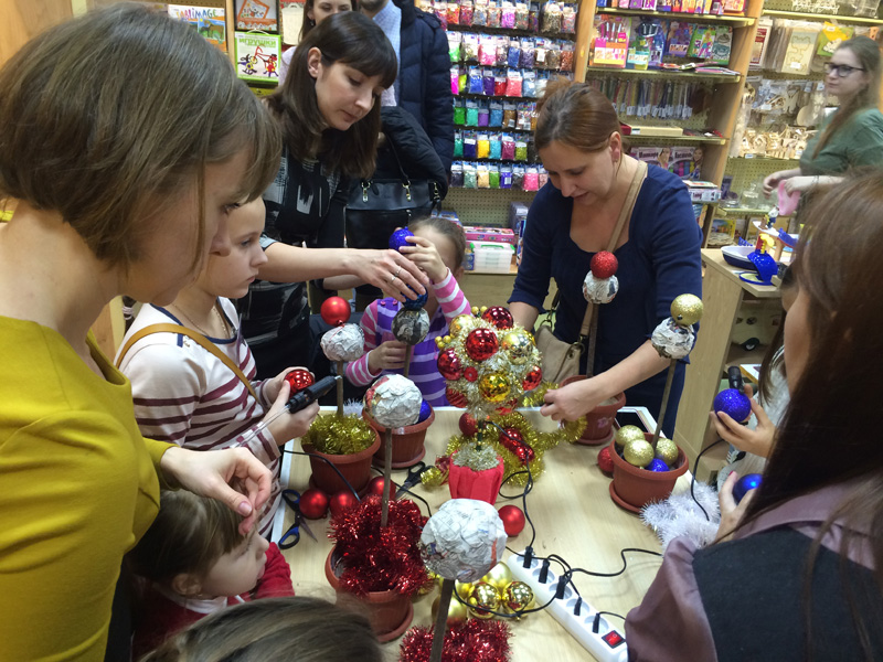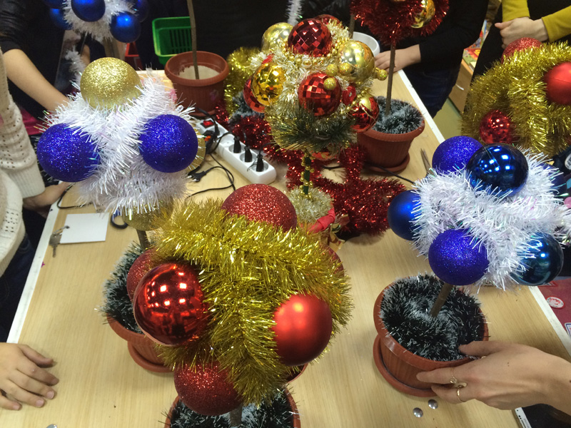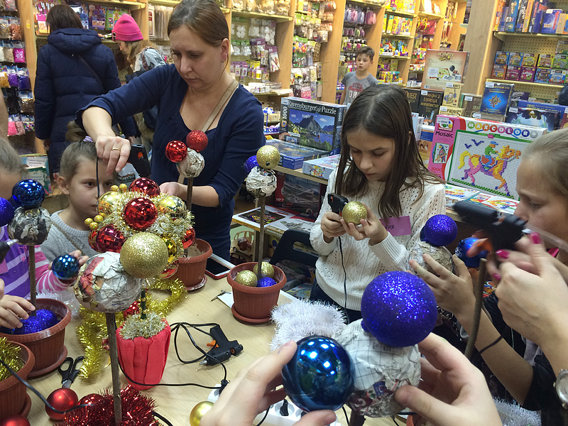 Каждый мастер-класс уникален, а этот был ещё и по-праздничному яркий и весёлый. Мастерить новогодний топиарий ребята пришли в приподнятом настроении, что ничуть не помешало им сосредоточиться на работе.