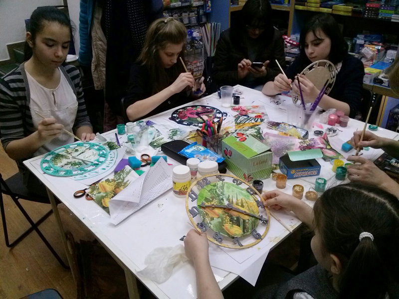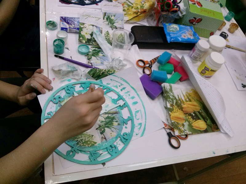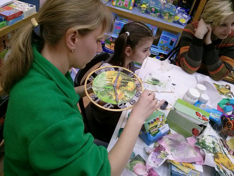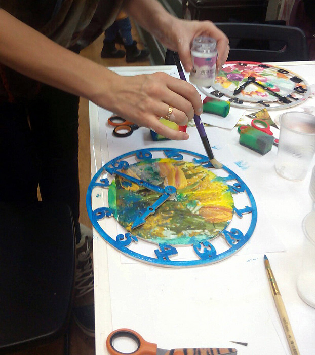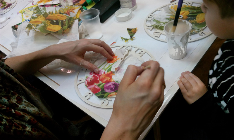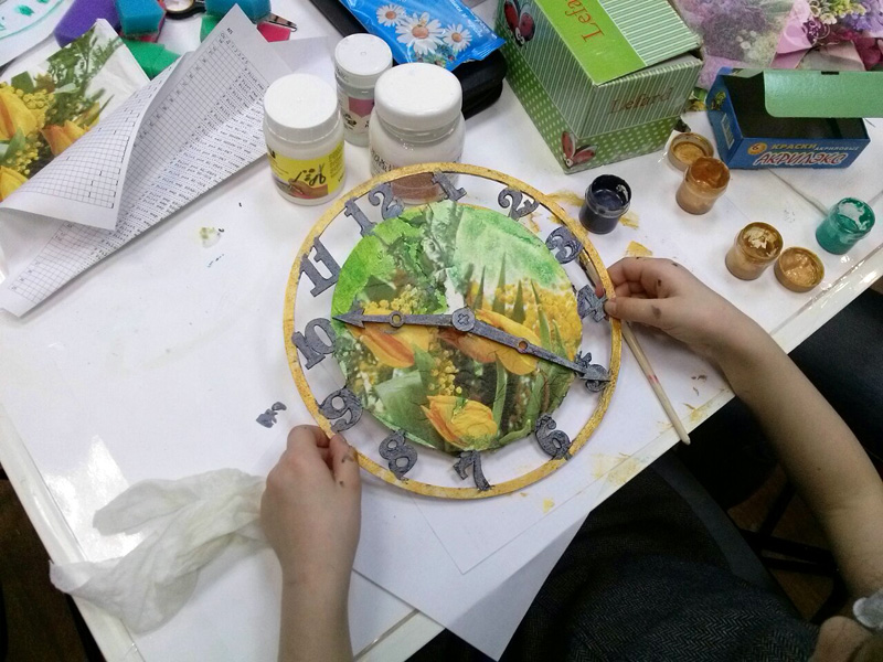 Вы можете держать время в руках, управлять им, делать его ярким, красивым и веселым? Все гости, которые побывали на мастер-классе «Часы в технике декупаж», научились этим хитрым премудростям.