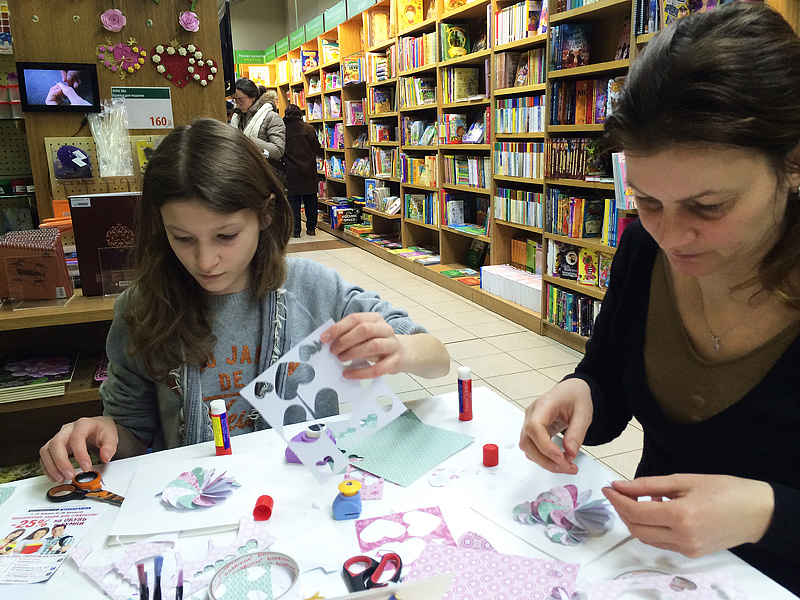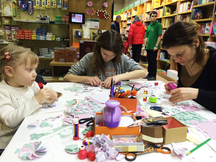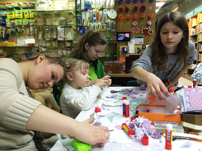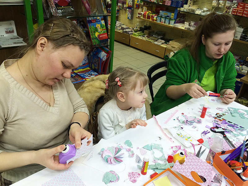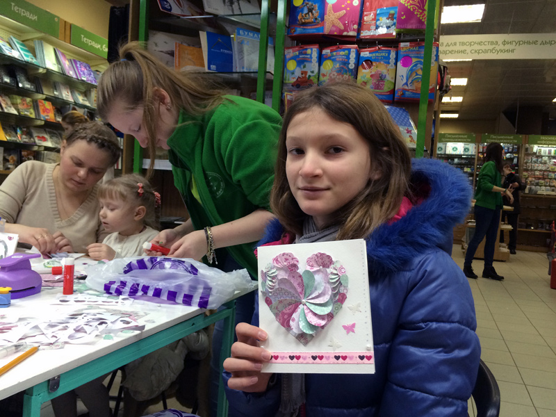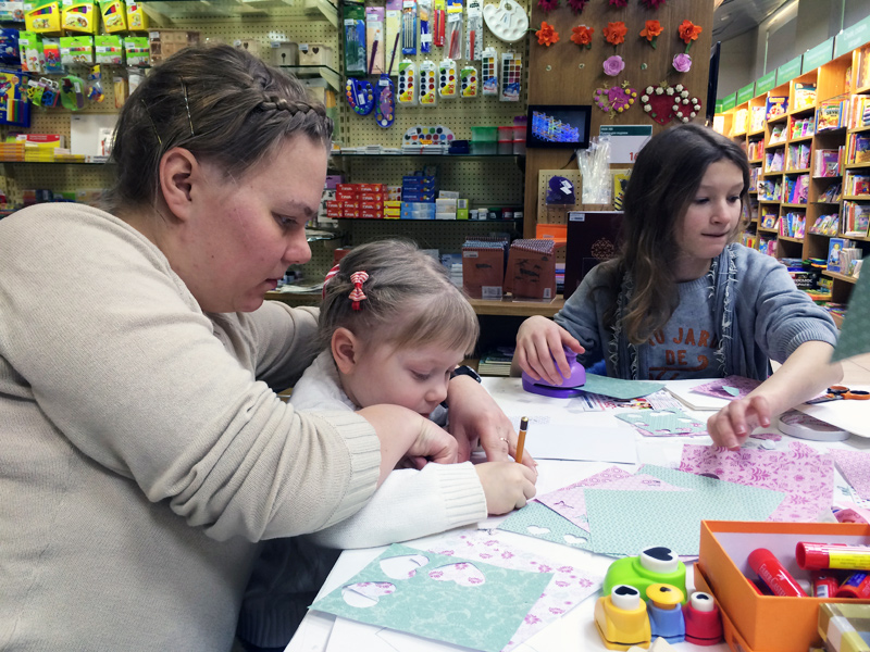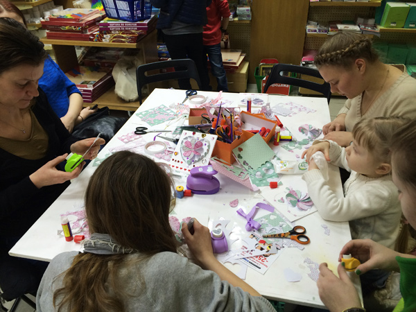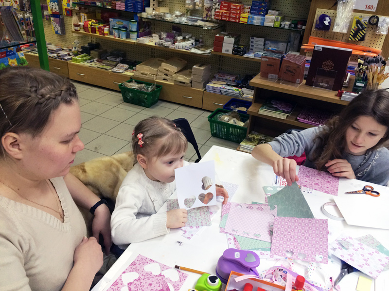 Творческий мастер-класс по скрапбукингу в этот раз был особенный. Ещё бы, делать валентинки — это вам не шутки! Волнительное и приятное занятие захватило и детей, и взрослых.