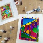 Готово! Осталось дать высохнуть краске и можно вставлять витраж в рамочку.