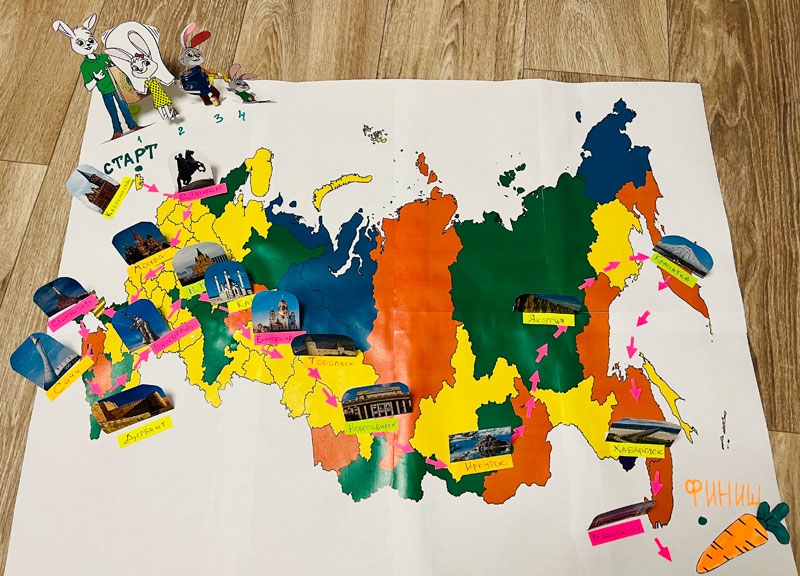 Таким образом, участники каждый сам передвигаются по стране, отвечая на вопросы, связанные с тем местом, где они сейчас находятся. Тот, кто быстрее всех доедет до Владивостока, получит заветную золотую морковку и займет 1 место. Соответственно, второй дошедший — второе место, третий — третье место.