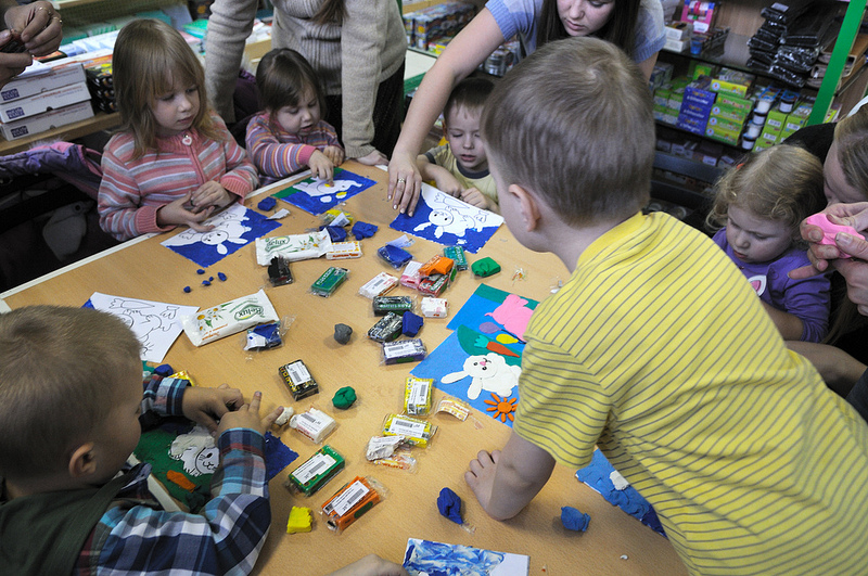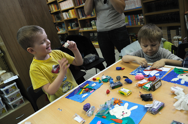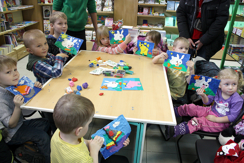 31 марта в магазине «Белый Кролик» на Новых Черёмушках мы собирались, чтобы поздравить победителей и поблагодарить всех участников! «Белый Кролик» — магазин для развития, поэтому мы решили не просто вручить призы, а провести мастер-класс по лепке специально для юных творцов. Почти два часа ребята учились создавать объёмные картинки из пластилина, и у них получились отличные поделки!