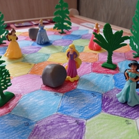 Приключения отважных принцесс. Справятся? :)В комплект игры входит поле, кубик, фишки (в нашем случае фигурки принцесс, так как дочка их очень любит), дополнительные карточки.