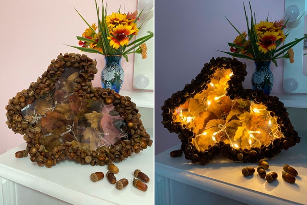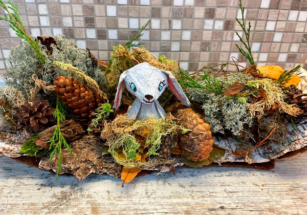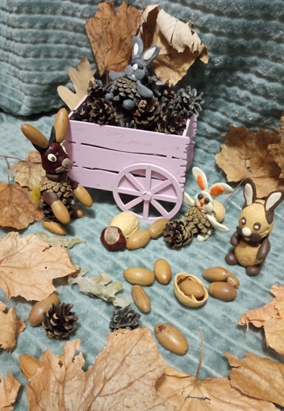 Из шляпок желудей, осенних листочков и шишек. С Белым Кроликом даже сон спокойнее в нестрашной темноте!2 место