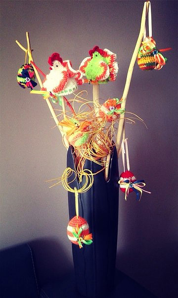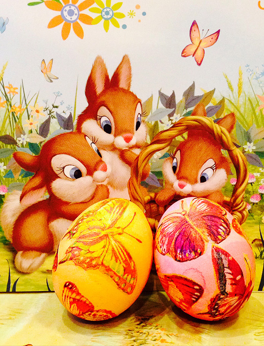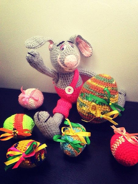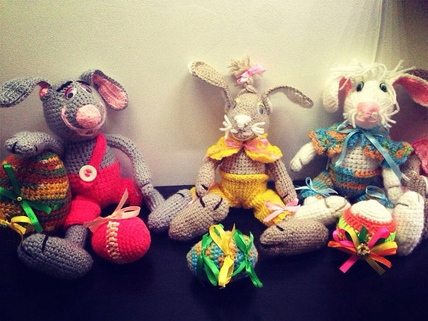 Лиза и бабушка постарались на славу, великолепные вязанные кролики запаслись яйцами на весь следующий год! А сказать, что бабушка умеет вязать — это не сказать ничего!