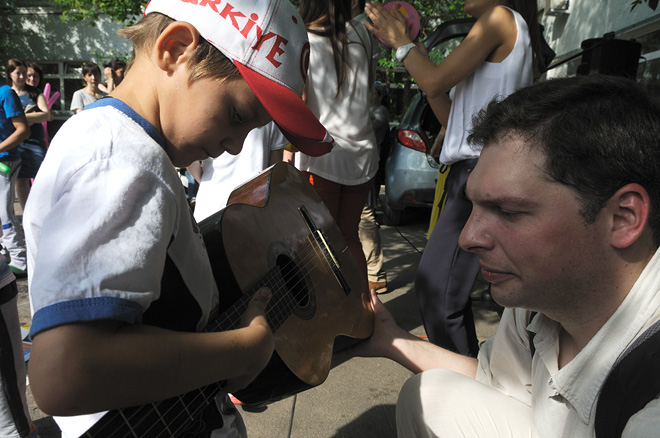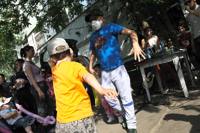 Тем временем выступление музыкантов уже превратилось в шумную дискотеку. Ребята постарше устроили невероятное шоу, демонстрируя отличную технику в стиле Rap и RnB. Импровизация была немедленно подхвачена музыкантами, и вот уже над больницей разносится ритмичный саунд.