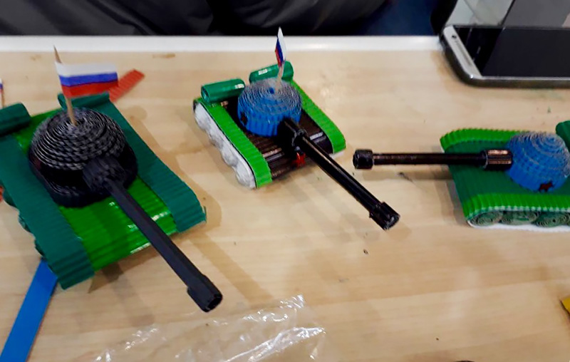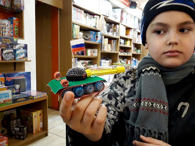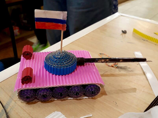 Кручу-верчу, фигуру построить хочу! Это основной принцип квиллинга. Из ярких бумажных спиралек можно построить всё, что угодно — возможности не ограничены. Фантазия плюс усидчивость, увлечённость плюс терпение и — готово, принимай, папа, в эксплуатацию свой собственный праздничный танк! :)
