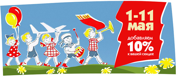Только для обладателей дисконтных карт — дополнительные 10% к скидке на вашей карте! Скидка суммируется с накопленной скидкой по карте и действует на весь ассортимент! Таким образом, максимальная для владельцев карт 10% составит 20%!